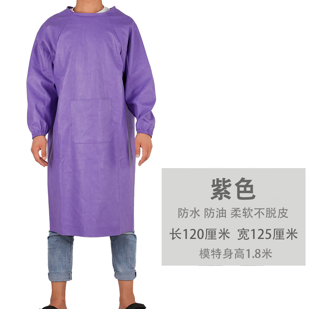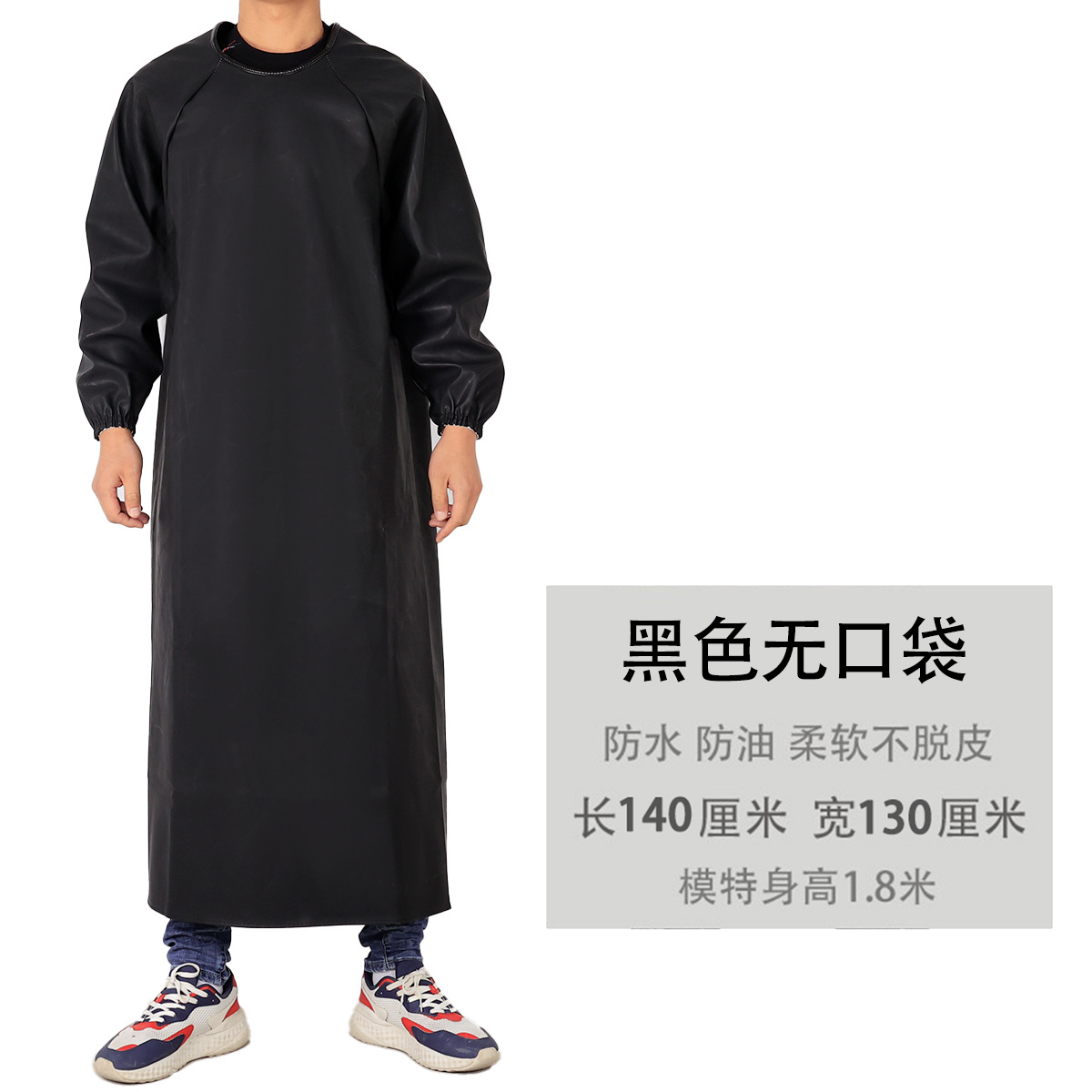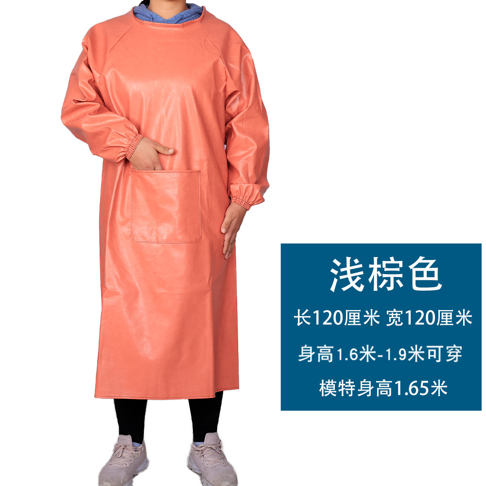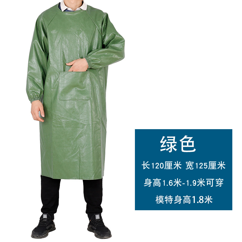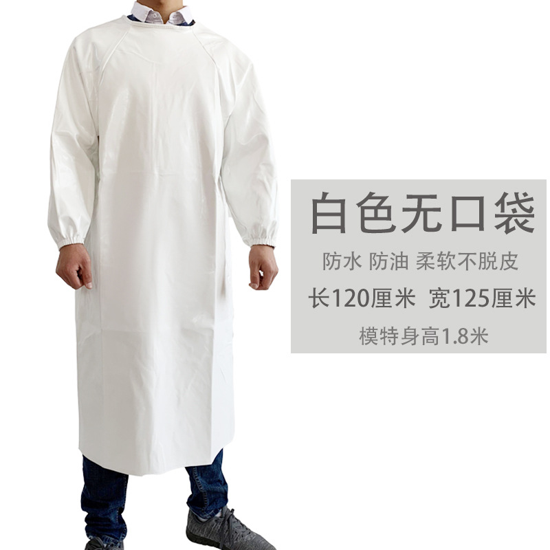 皮革防水围裙防油耐弱酸碱男女反穿衣倒背衣长袖加厚工作服PU罩衣