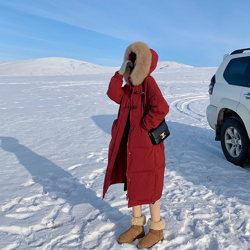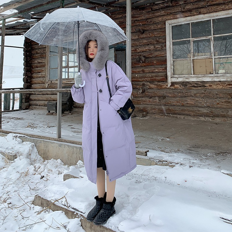 胡楚靓同款羽绒服女中长款2022新款韩版宽松加厚面包服大毛领外套