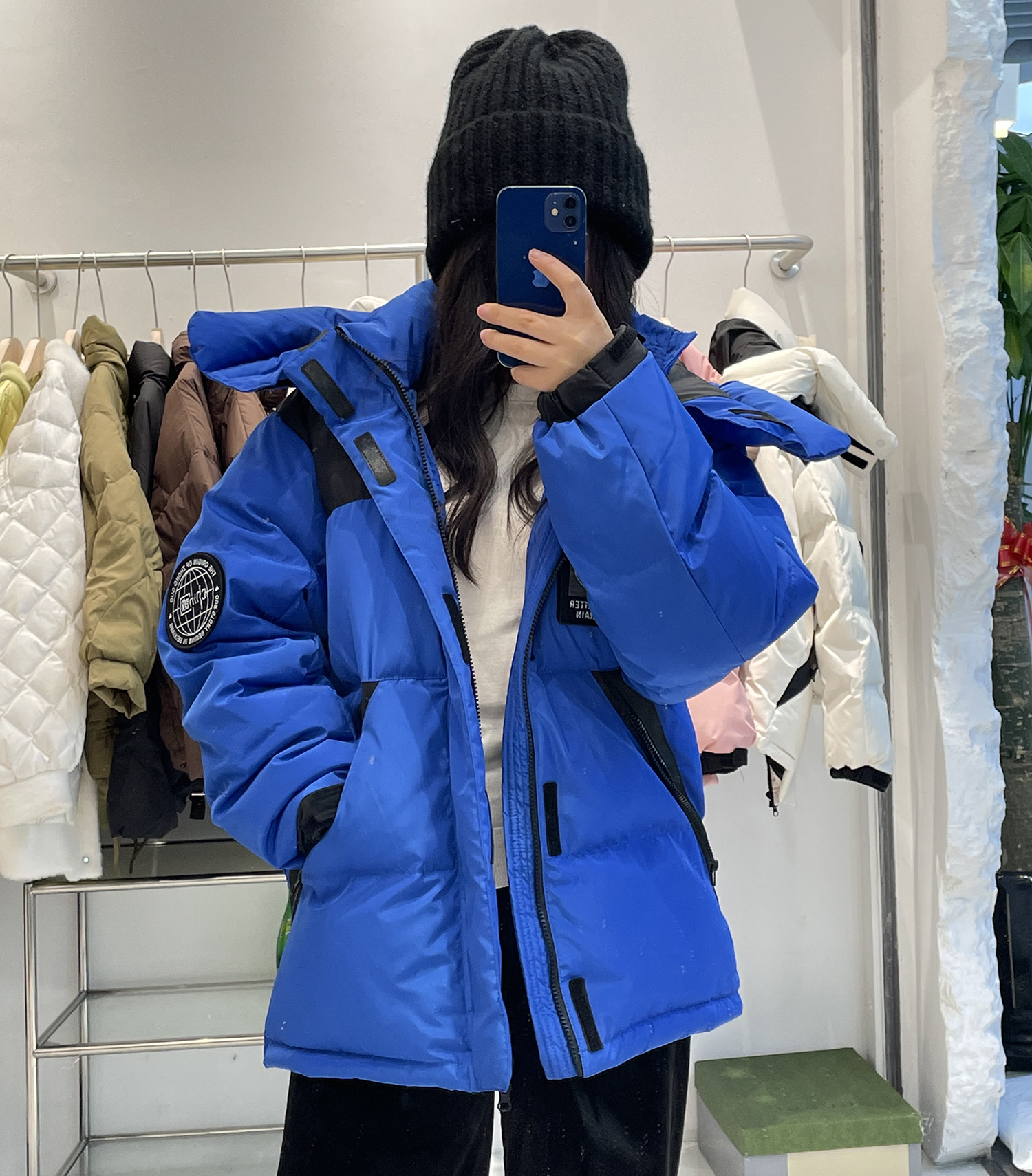 白鸭绒连帽羽绒服女2022年新款加厚短款潮牌派克服工装情侣装外套