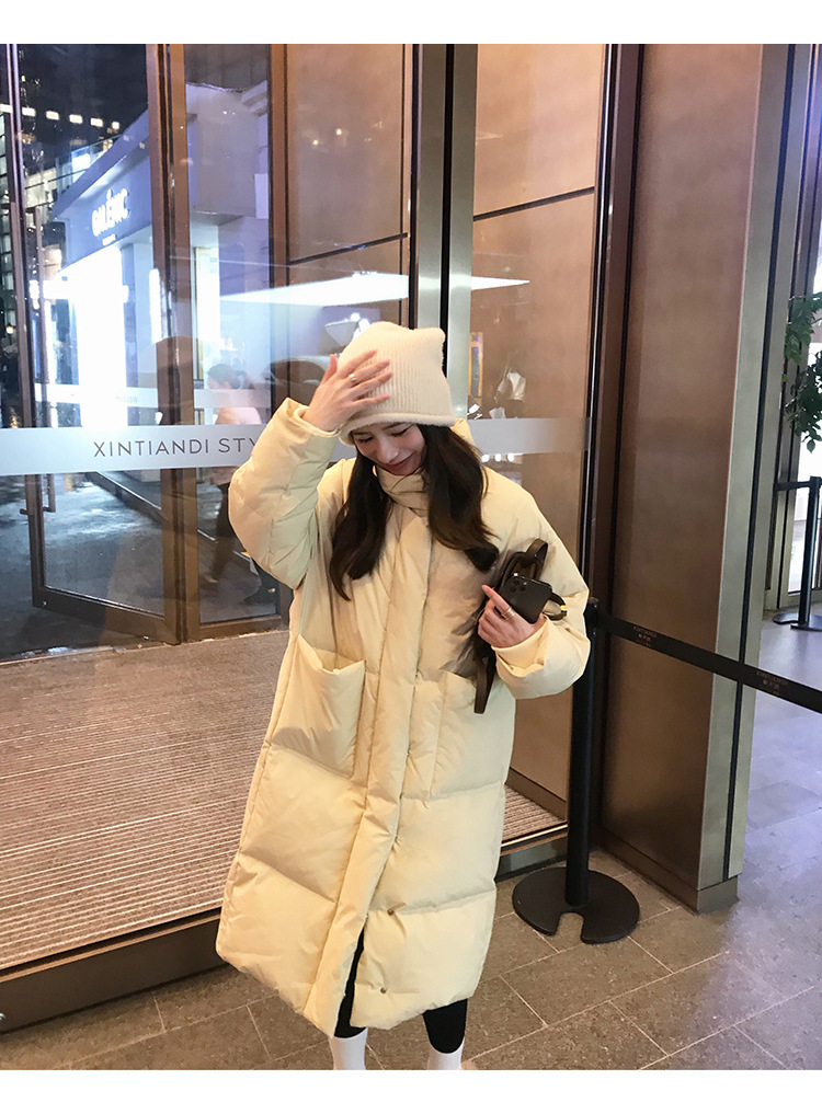 网红同款白鸭绒立领羽绒服女中长款2022年新款小个子宽松显瘦外套