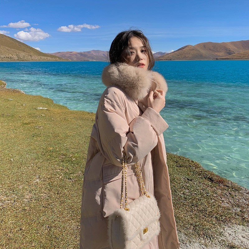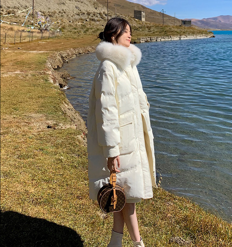 胡楚靓阿尔卑斯羽绒服女中长款过膝大毛领2022新款冬装宽松外套潮
