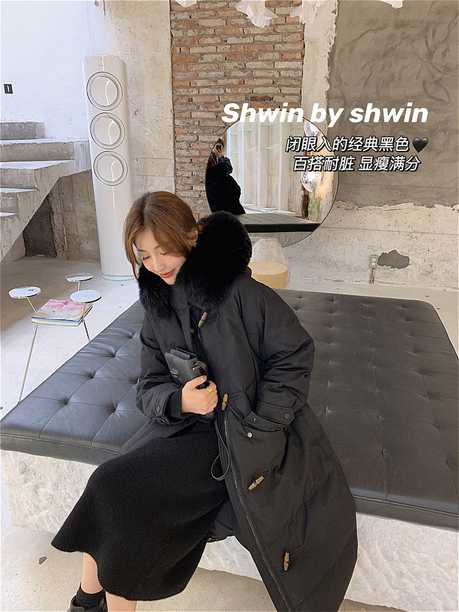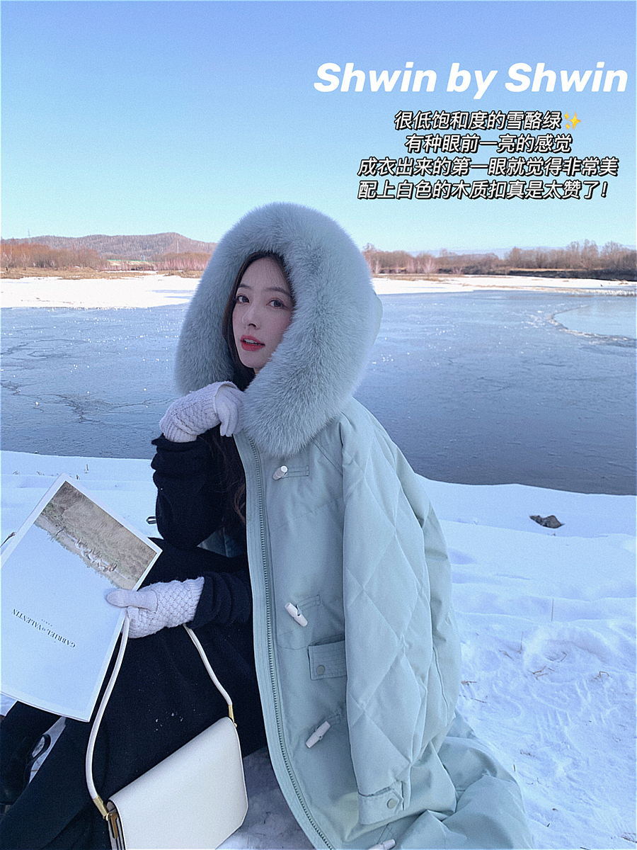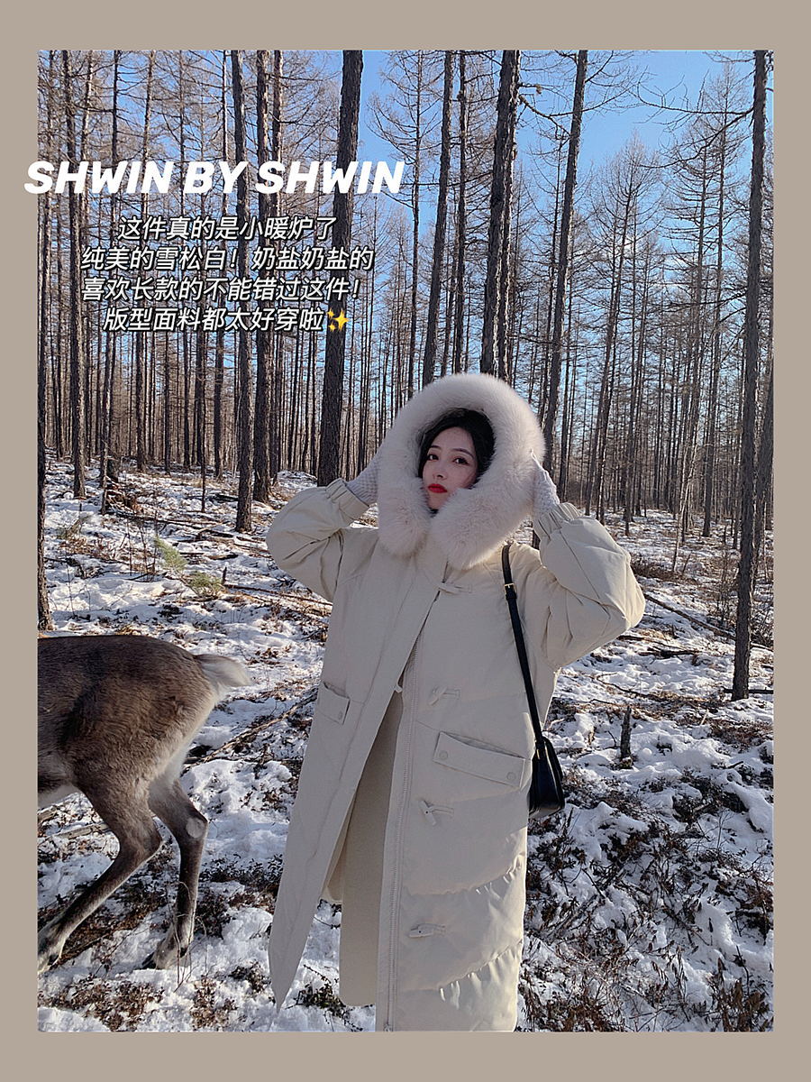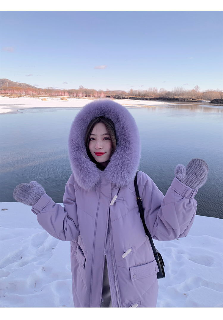 网红同款羽绒服女中长款2022新款韩版加厚大毛领冬装牛角扣外套潮