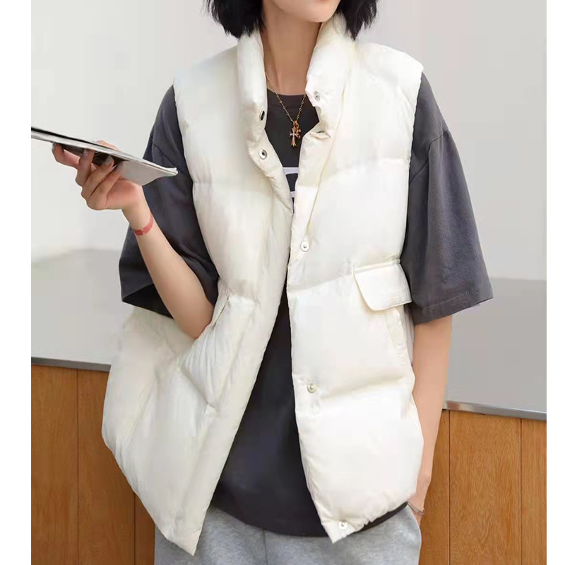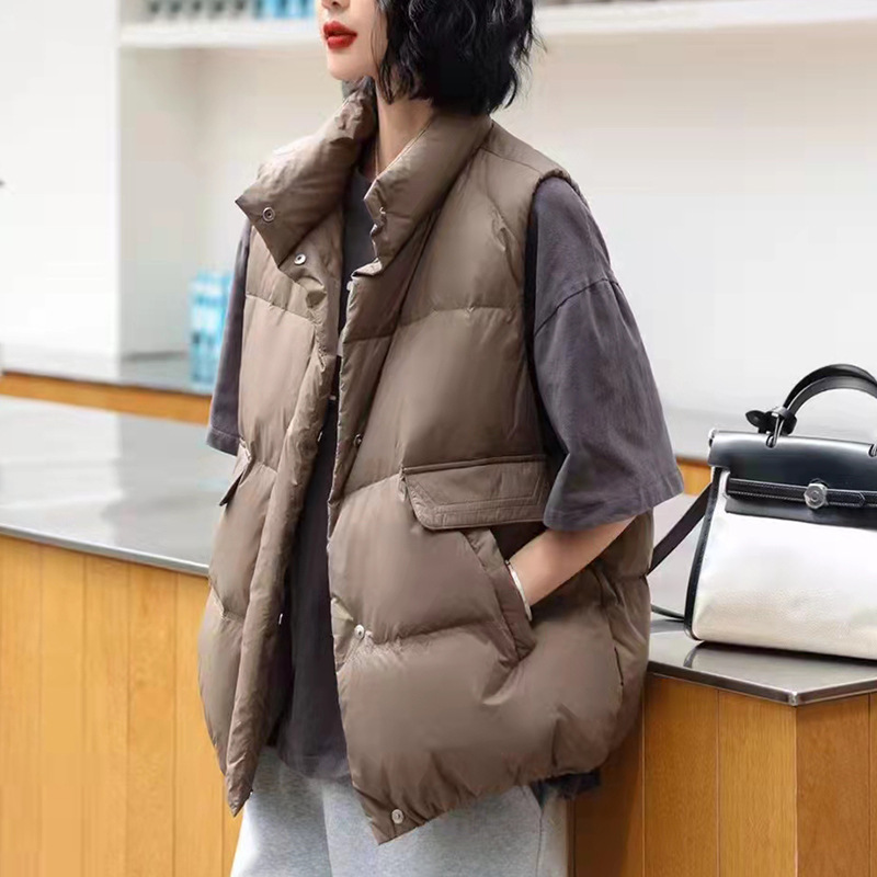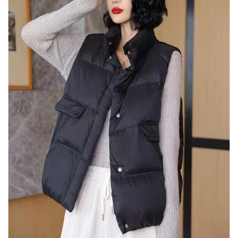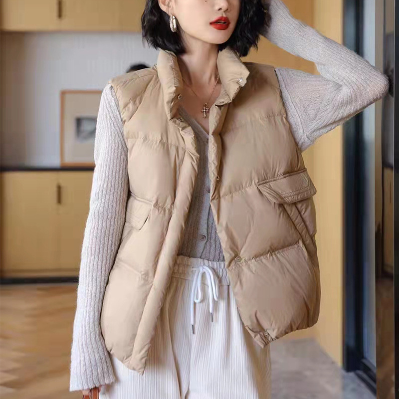 欧洲站2022年春秋羽绒马甲女韩版宽松白鸭绒立领坎肩新款背心外搭