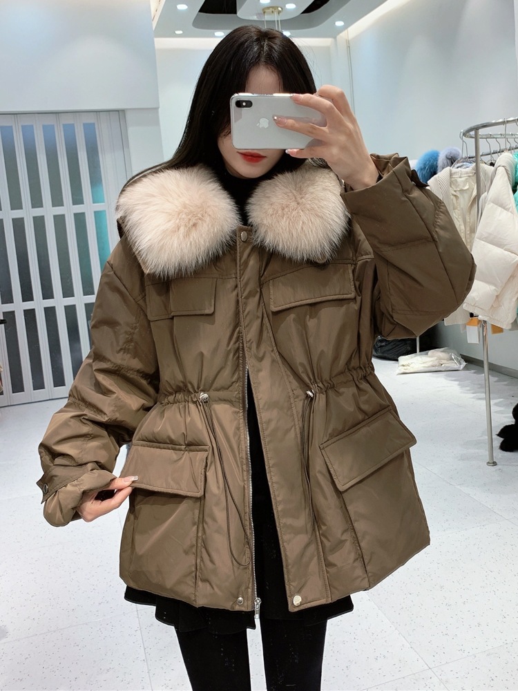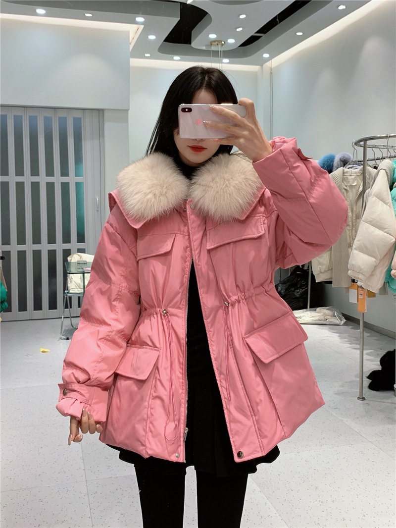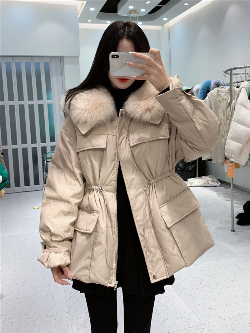 韩国东大门披肩大毛领羽绒服女中长款收腰显瘦白鸭绒外套