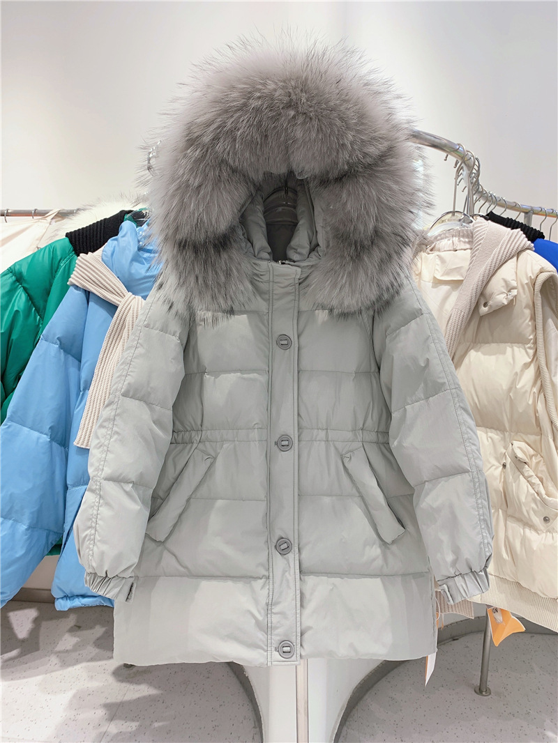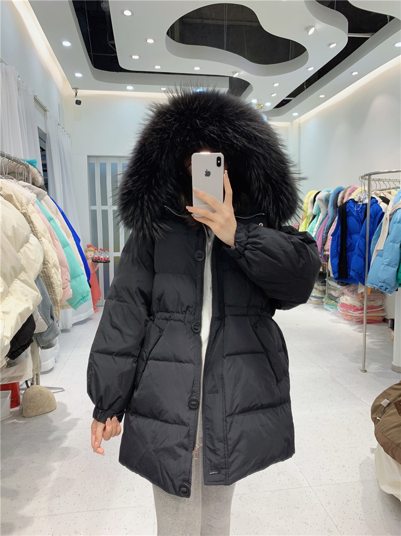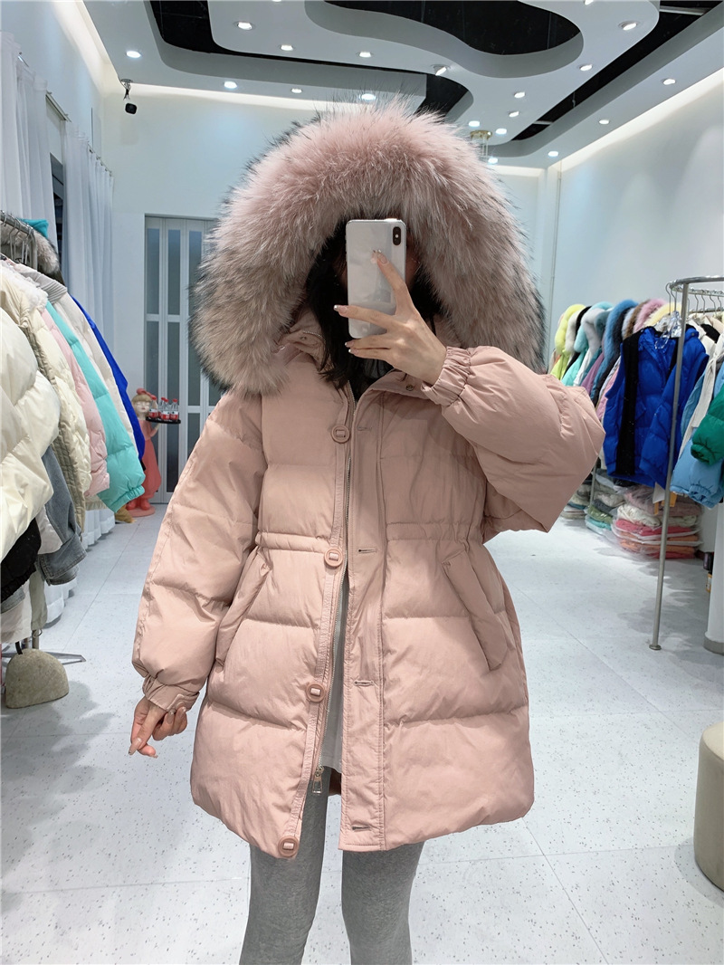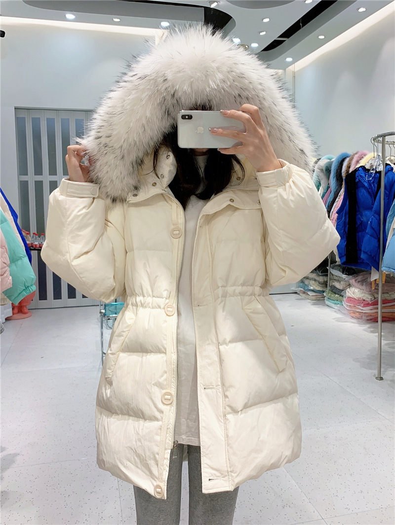 韩国东大门2022新款大毛领羽绒服女中长款收腰显瘦白鸭绒加厚外套