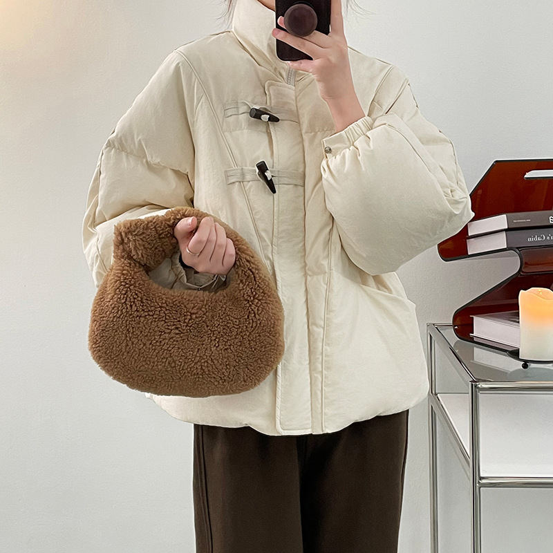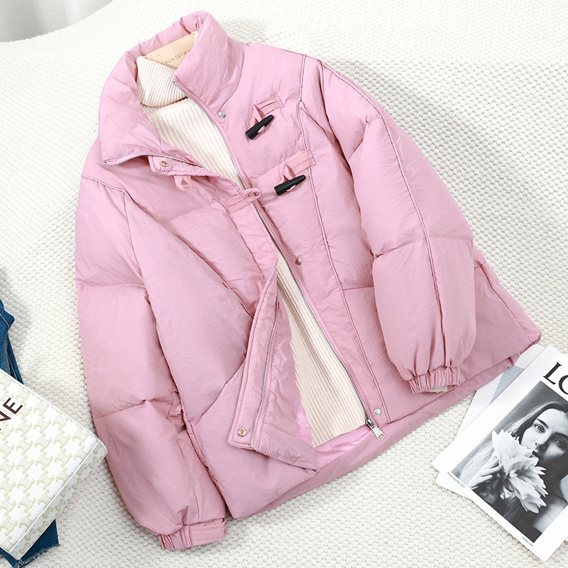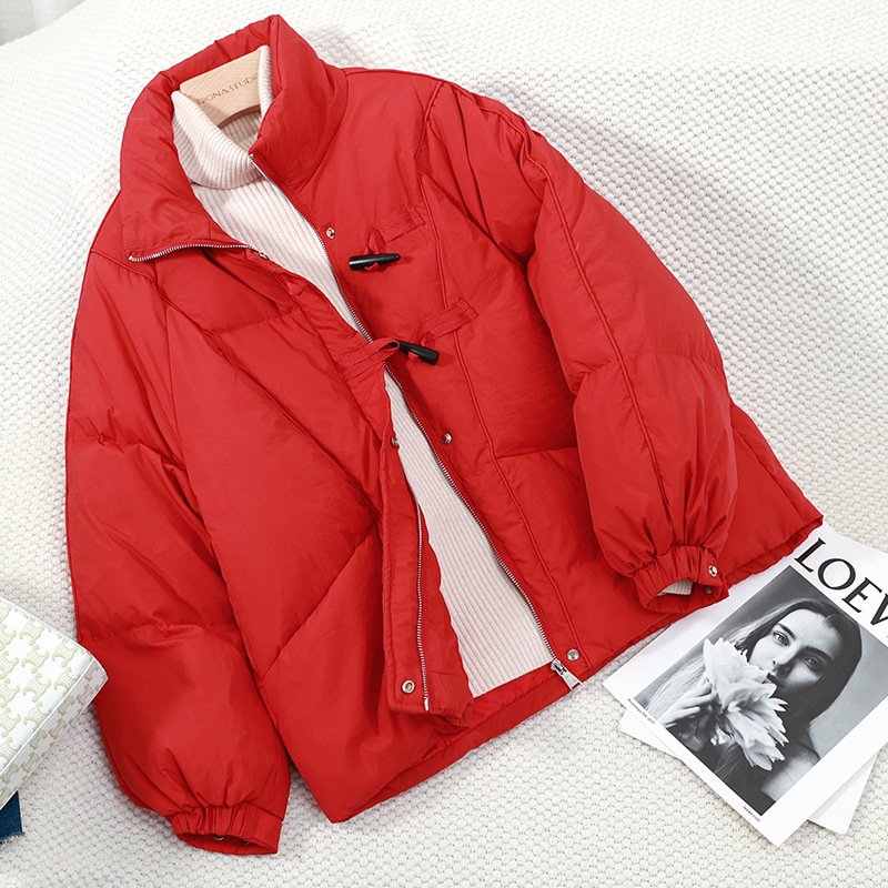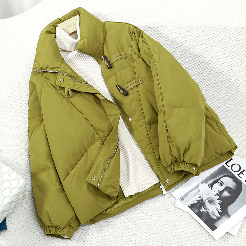 羽绒服女短款小个子面包服2022新款牛角扣时尚洋气白鸭绒加厚外套