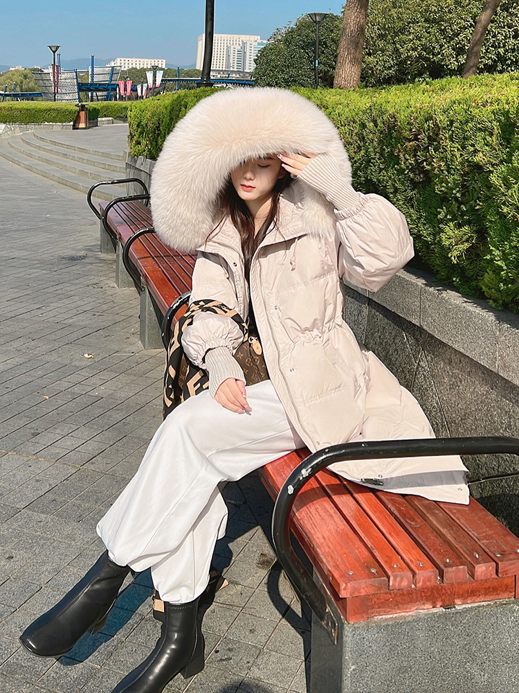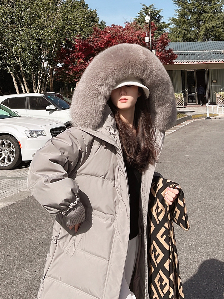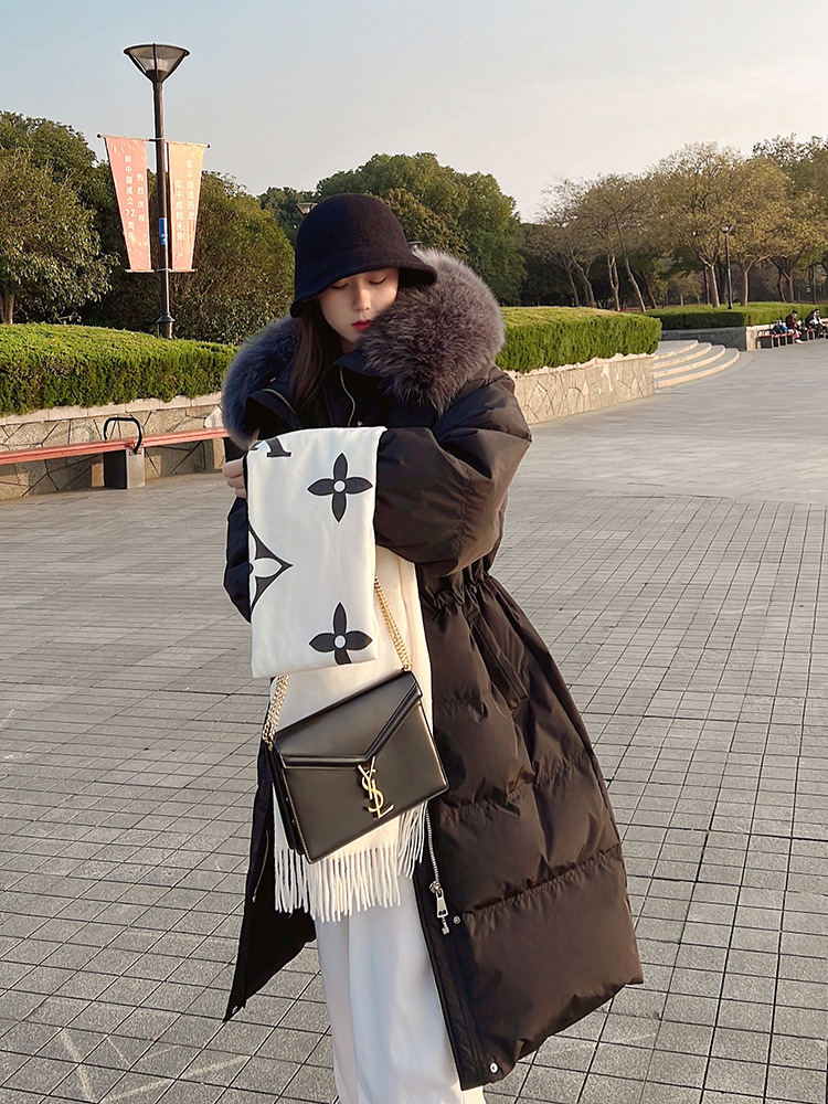 韩国东大门羽绒服女中长款过膝2022新款加厚收腰大毛领冬装外套潮