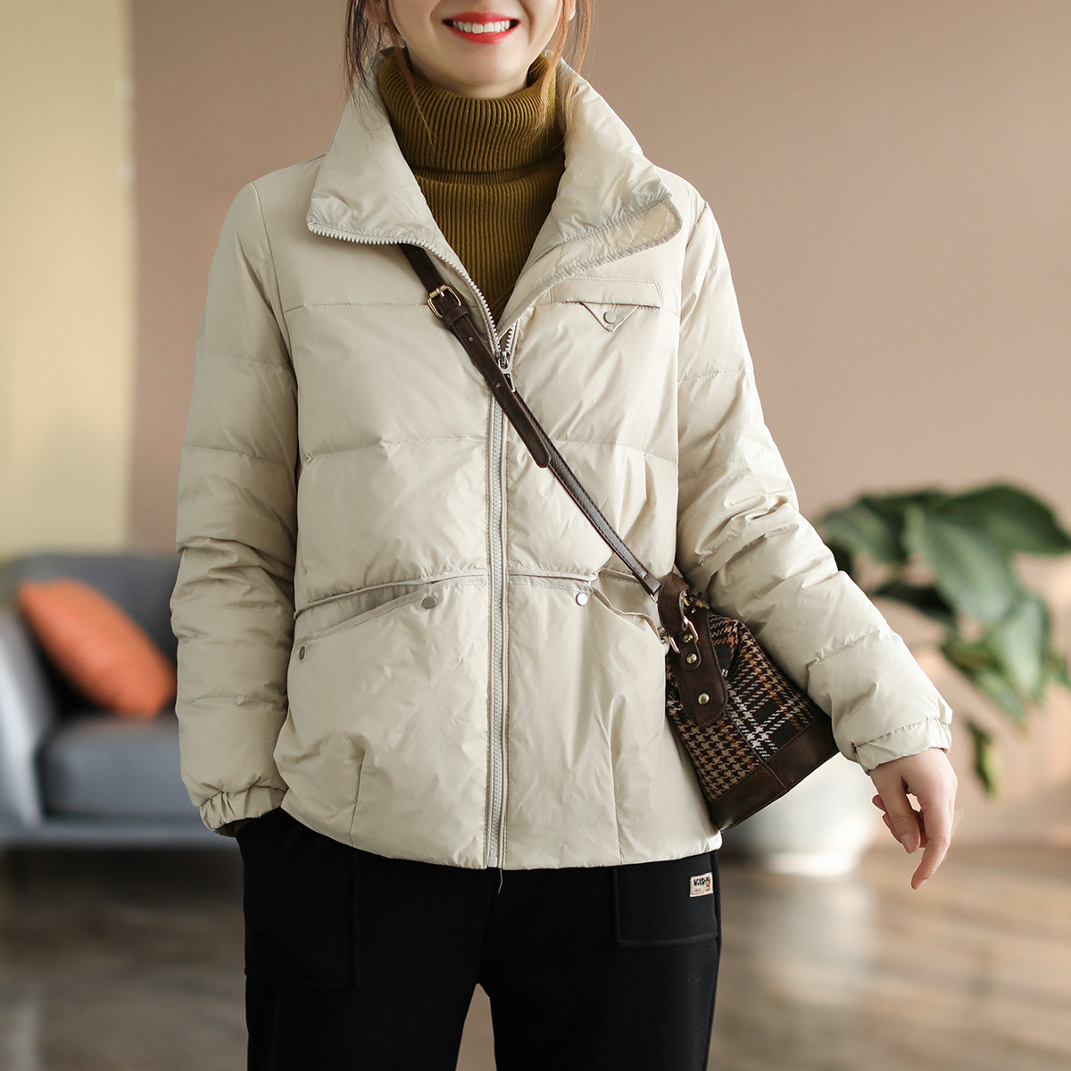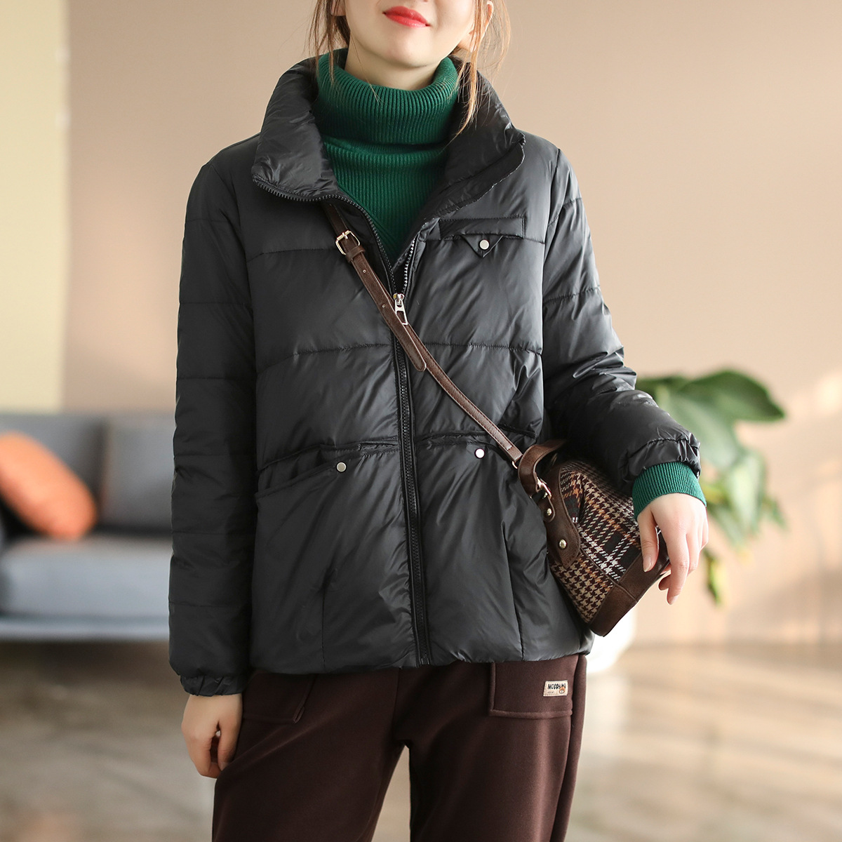 平湖羽绒服女装短款白鸭绒2022新款面包服女士冬季韩版外套批发潮