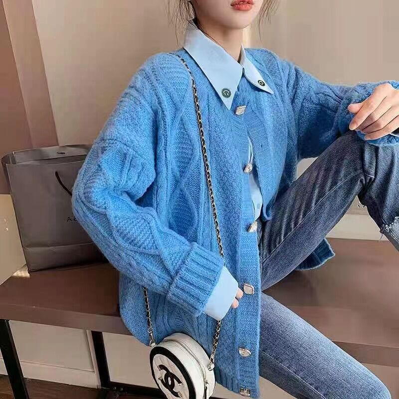 开衫女秋季2022春秋新款女装百搭针织衫宽松韩版甜美长袖毛衣外套