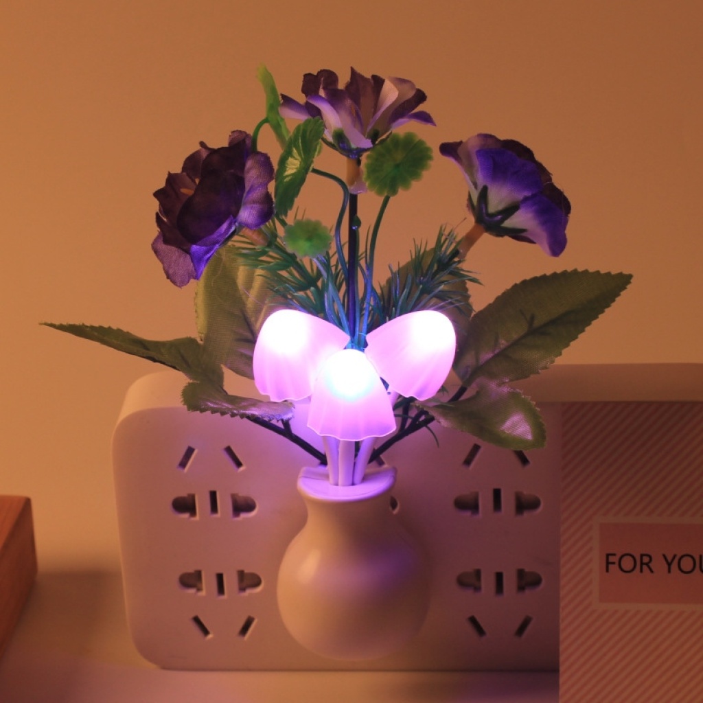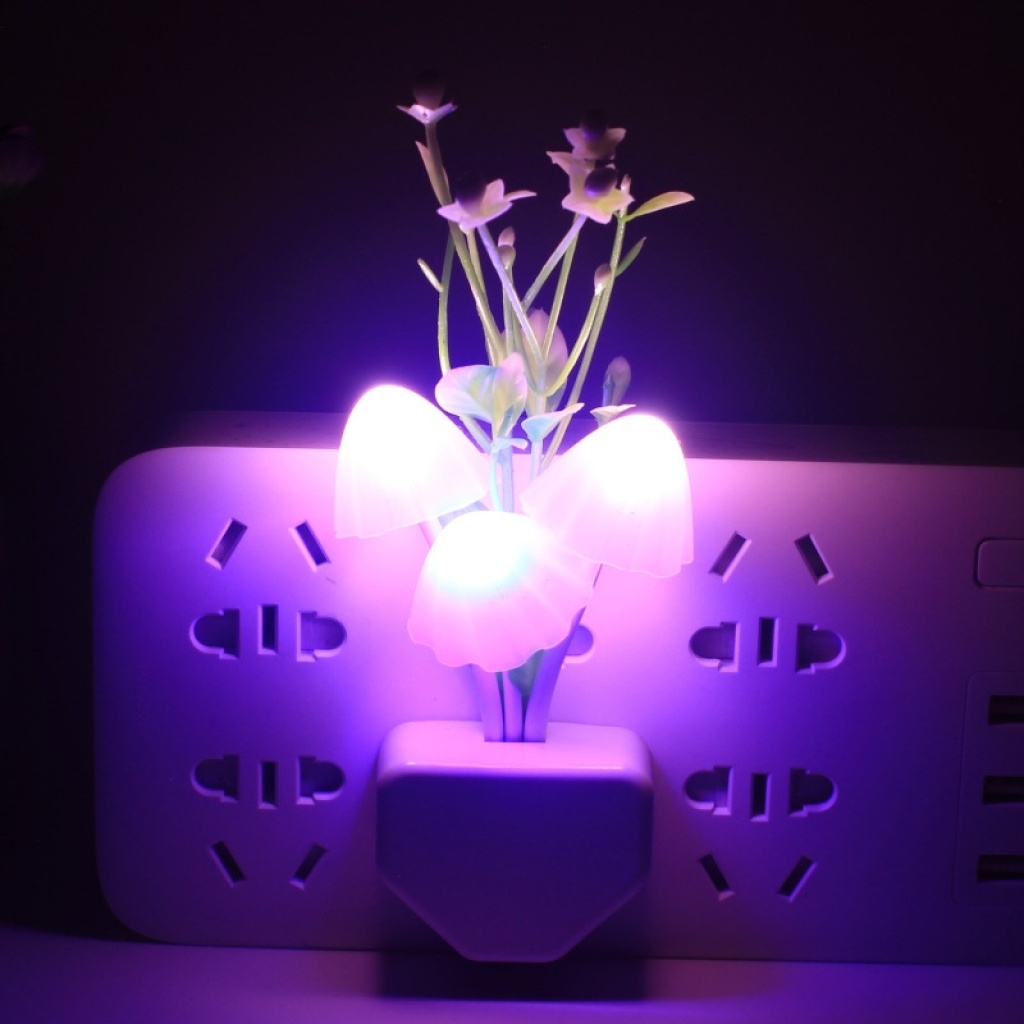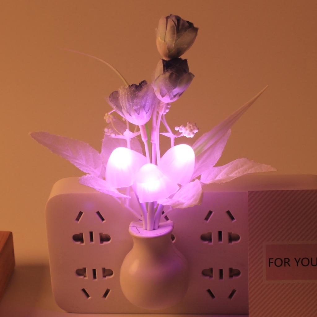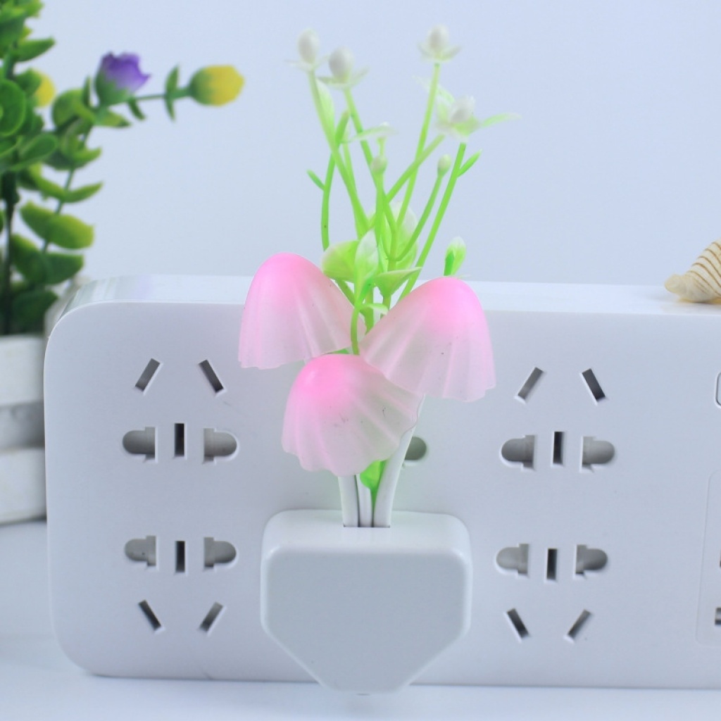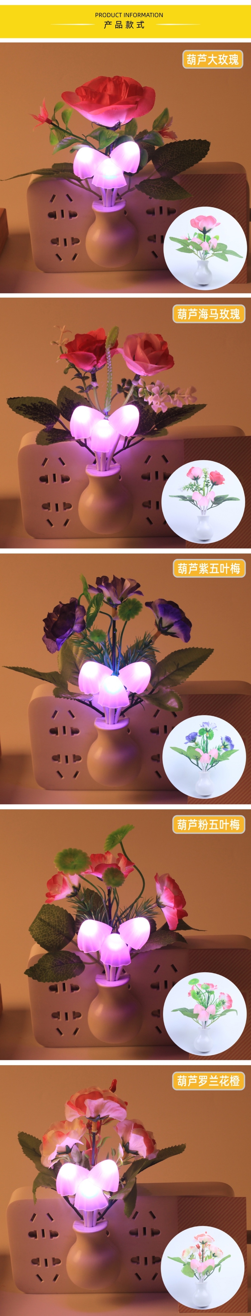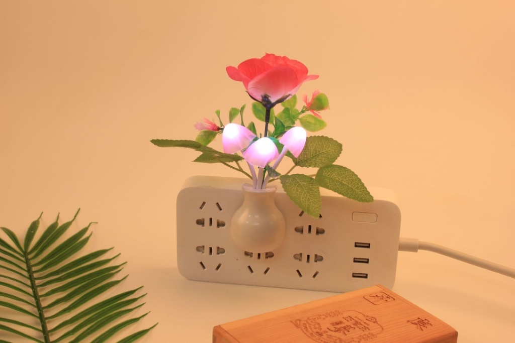 跨境专供新奇特壁灯led光控感应小夜灯插电花草蘑菇灯美规欧规