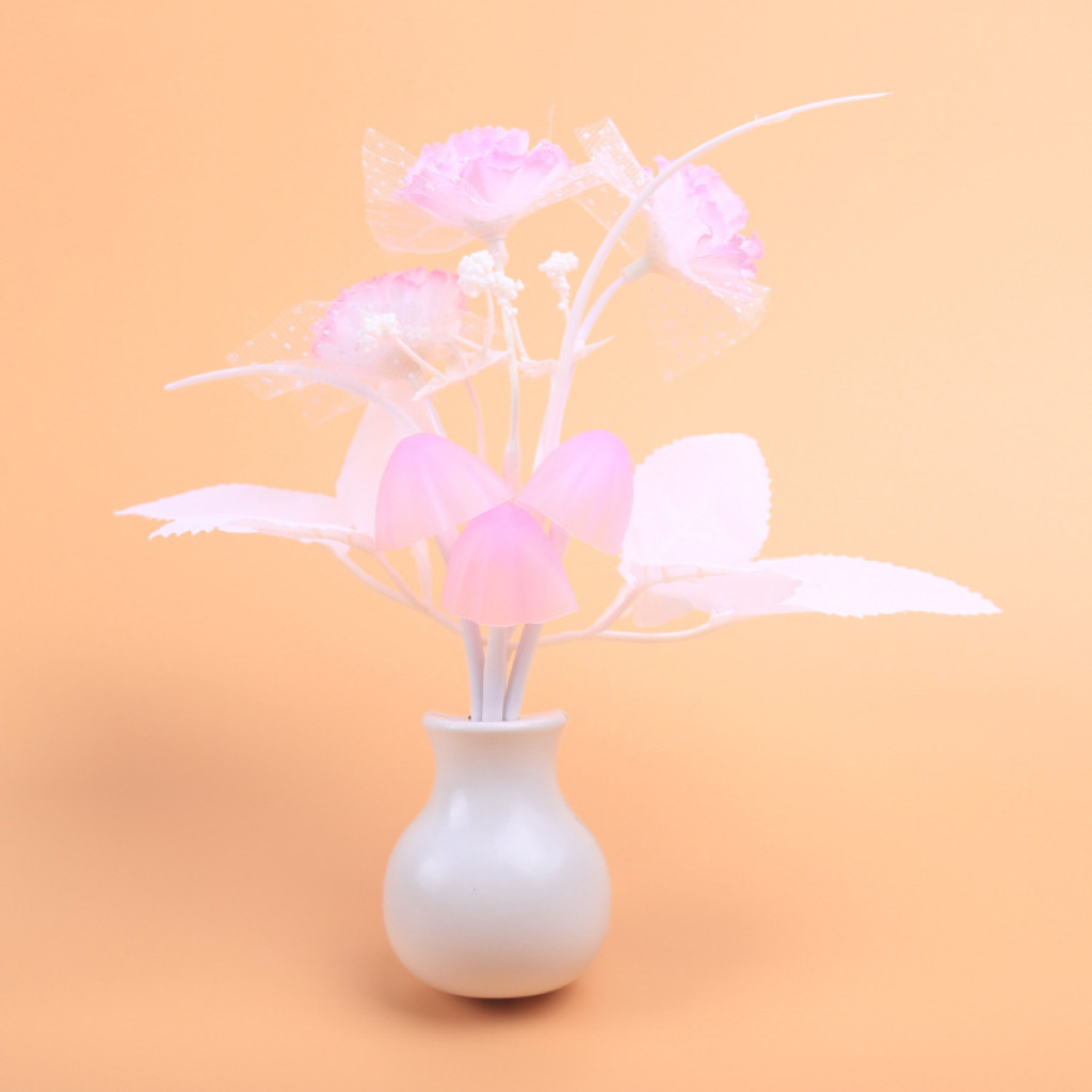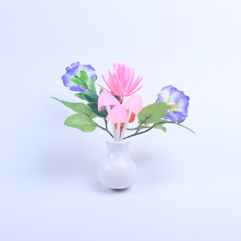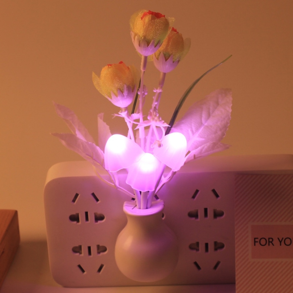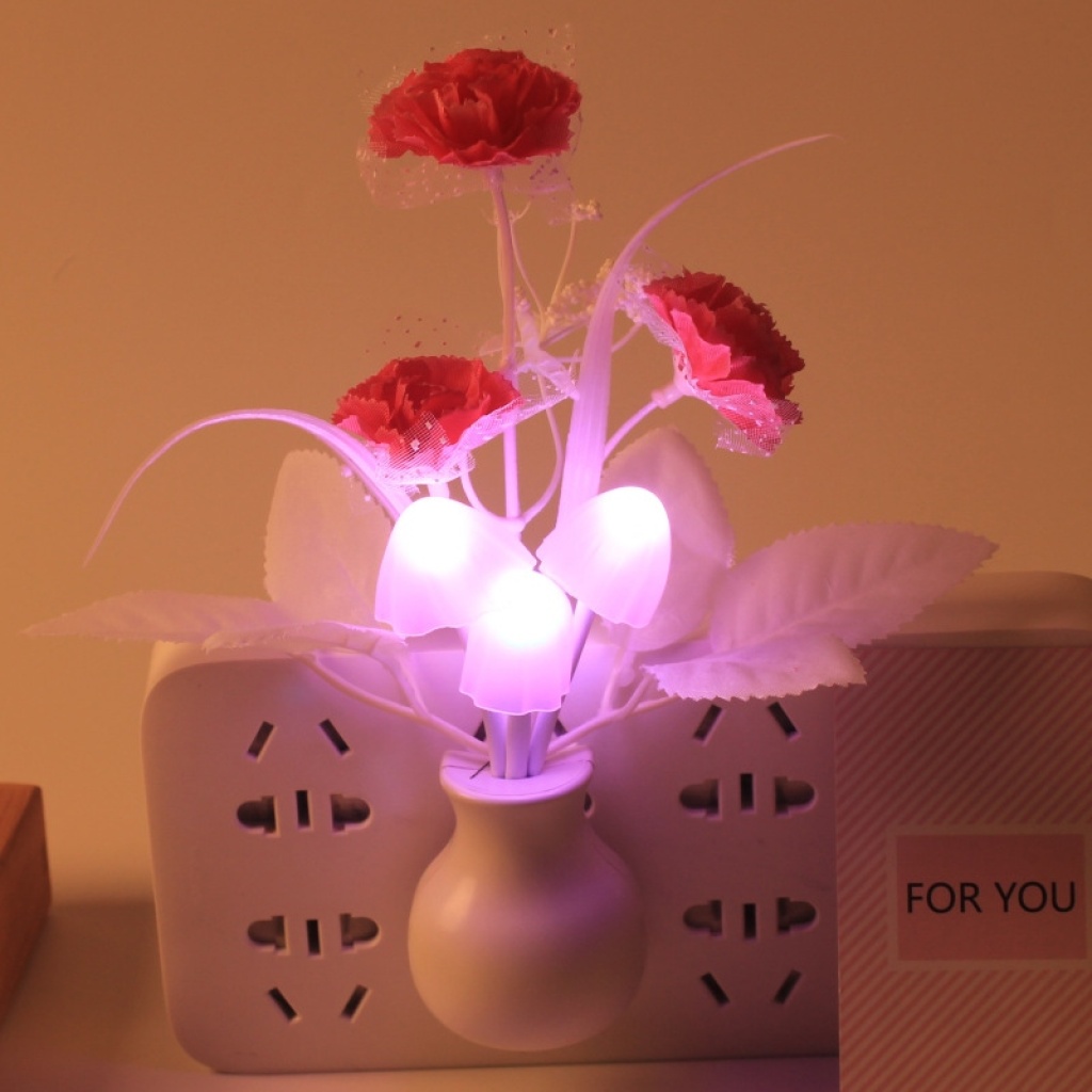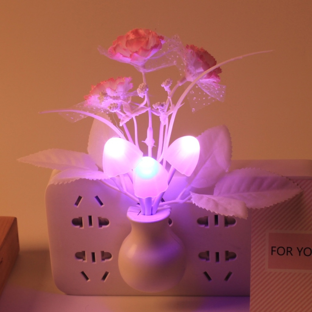 跨境专供新奇特壁灯led光控感应小夜灯插电花草蘑菇灯美规欧规