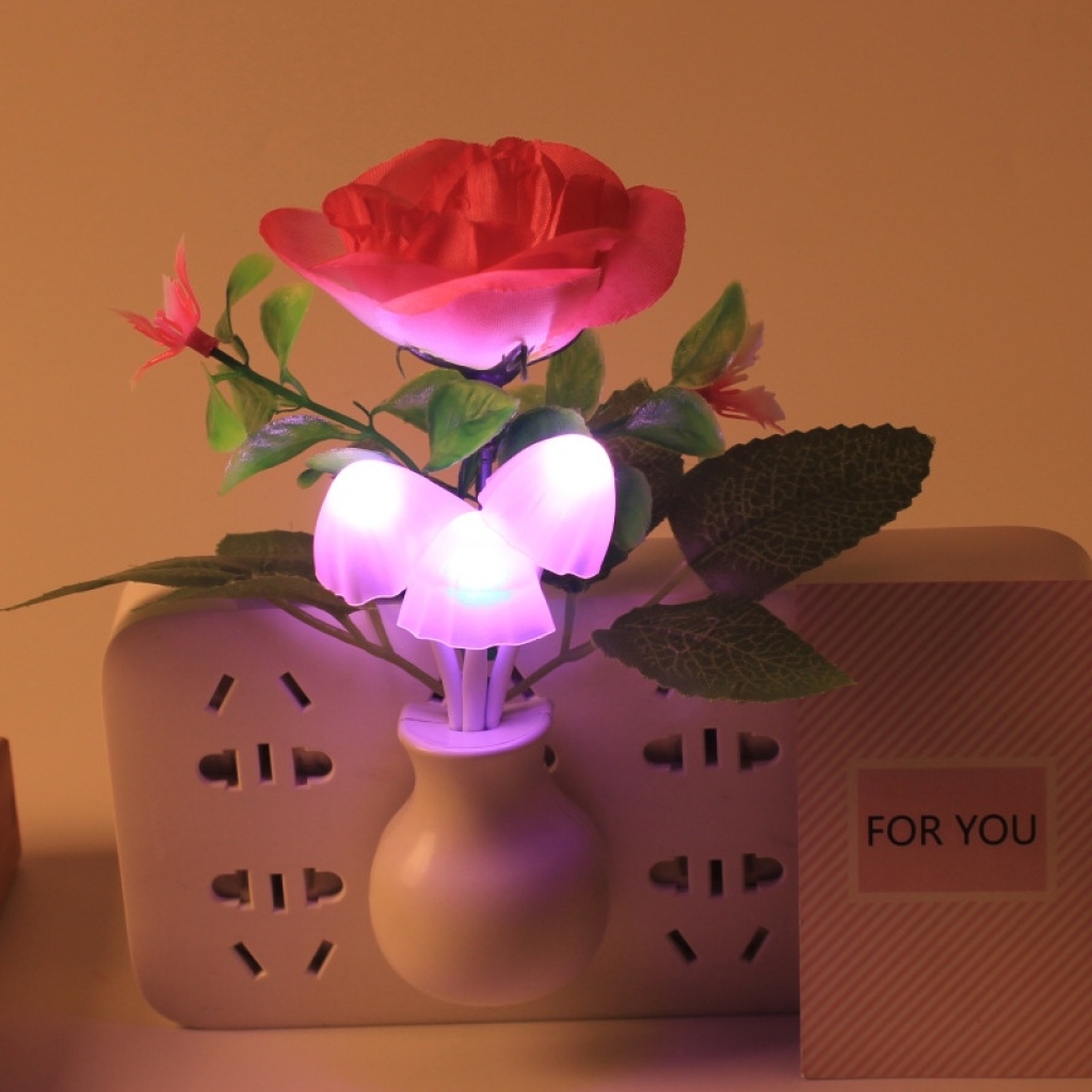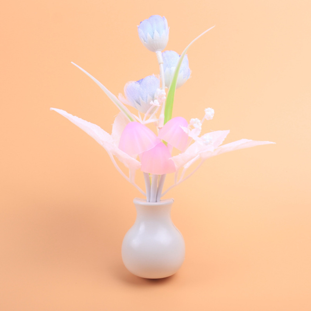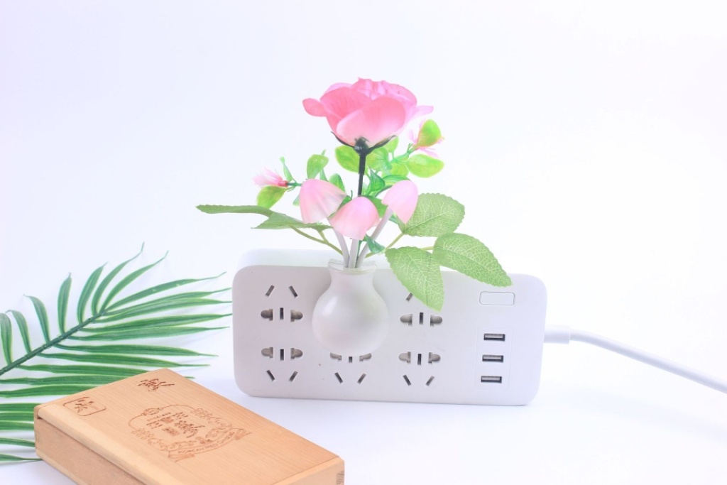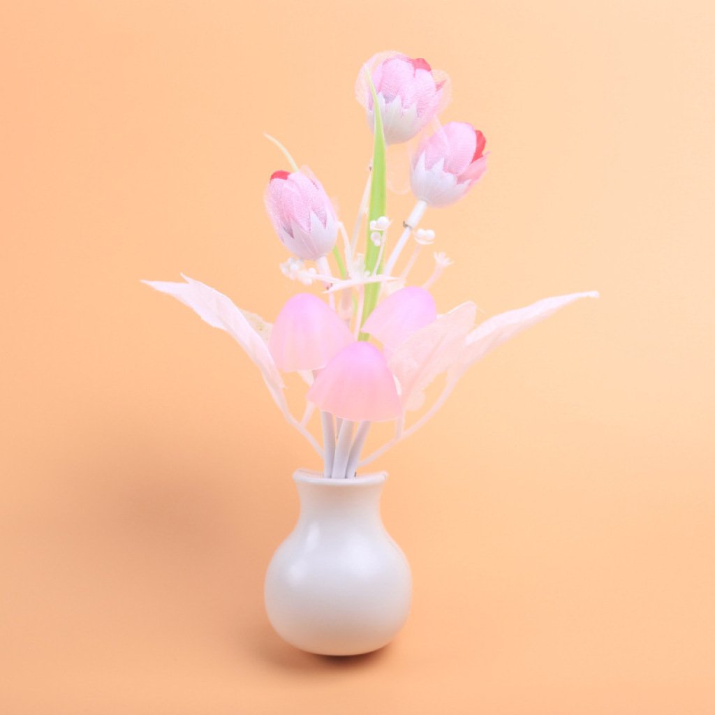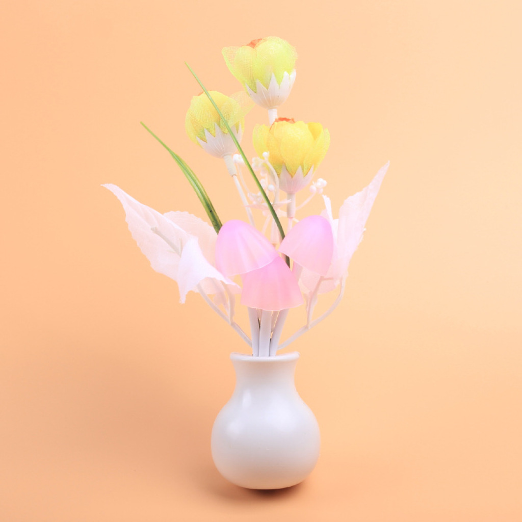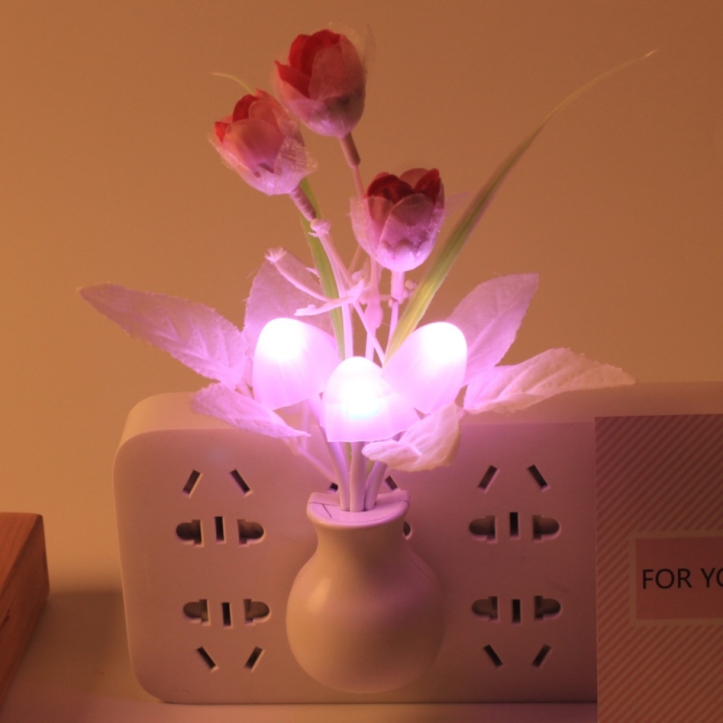 跨境专供新奇特壁灯led光控感应小夜灯插电花草蘑菇灯美规欧规