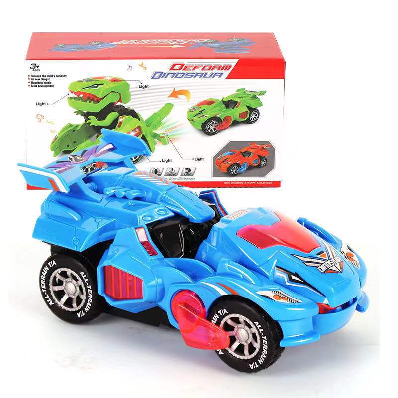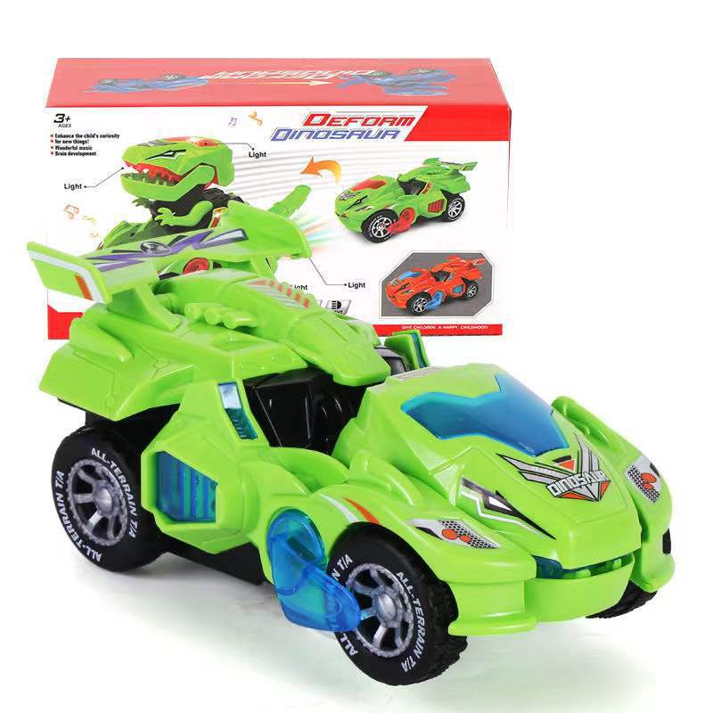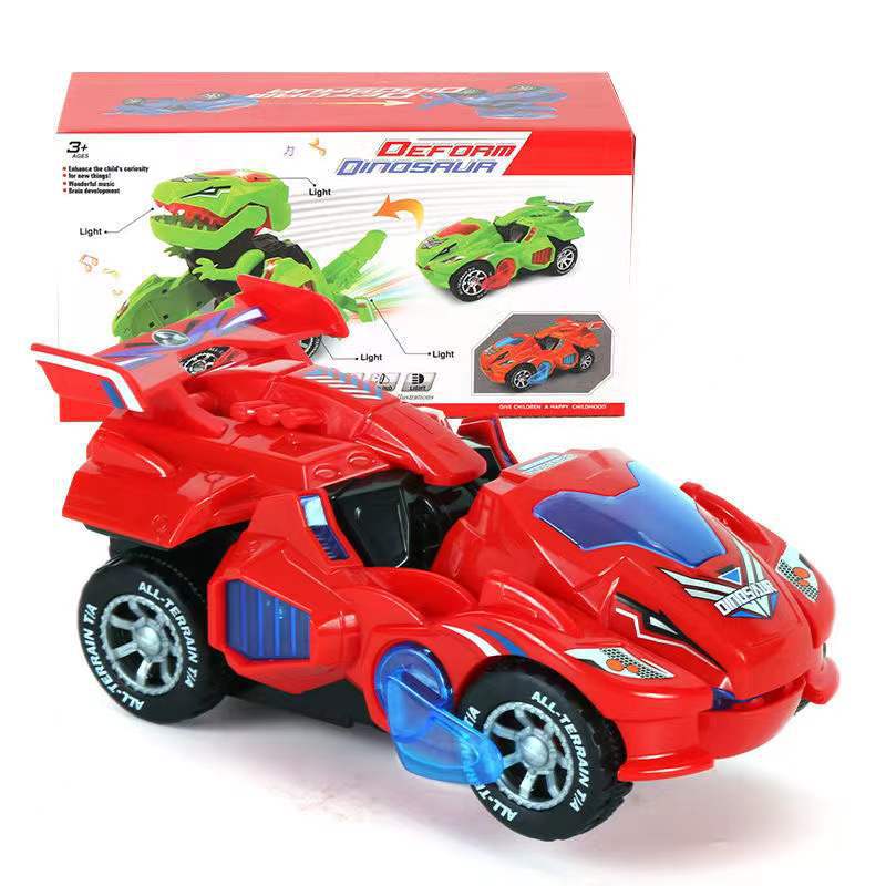 跨境电动万向恐龙变形机器人战车旋转小汽车灯光音乐地摊玩具批发
