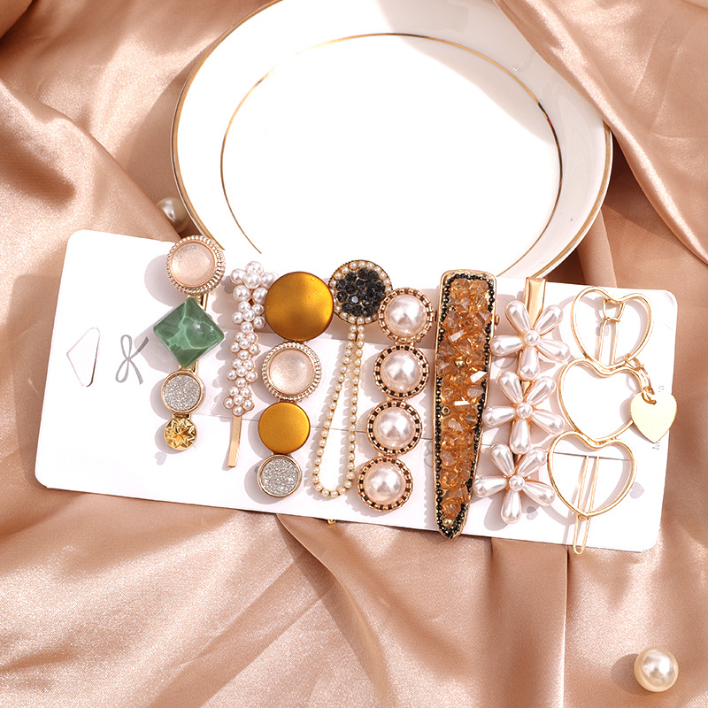 韩国人鱼姬发夹套装东大门新款女士一字夹珍珠水晶边夹义乌小饰品