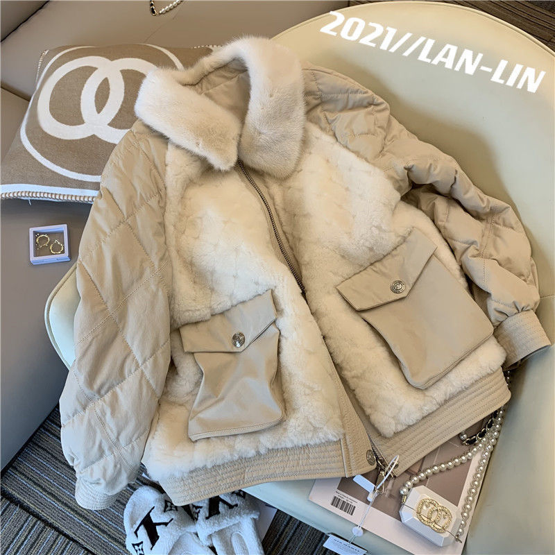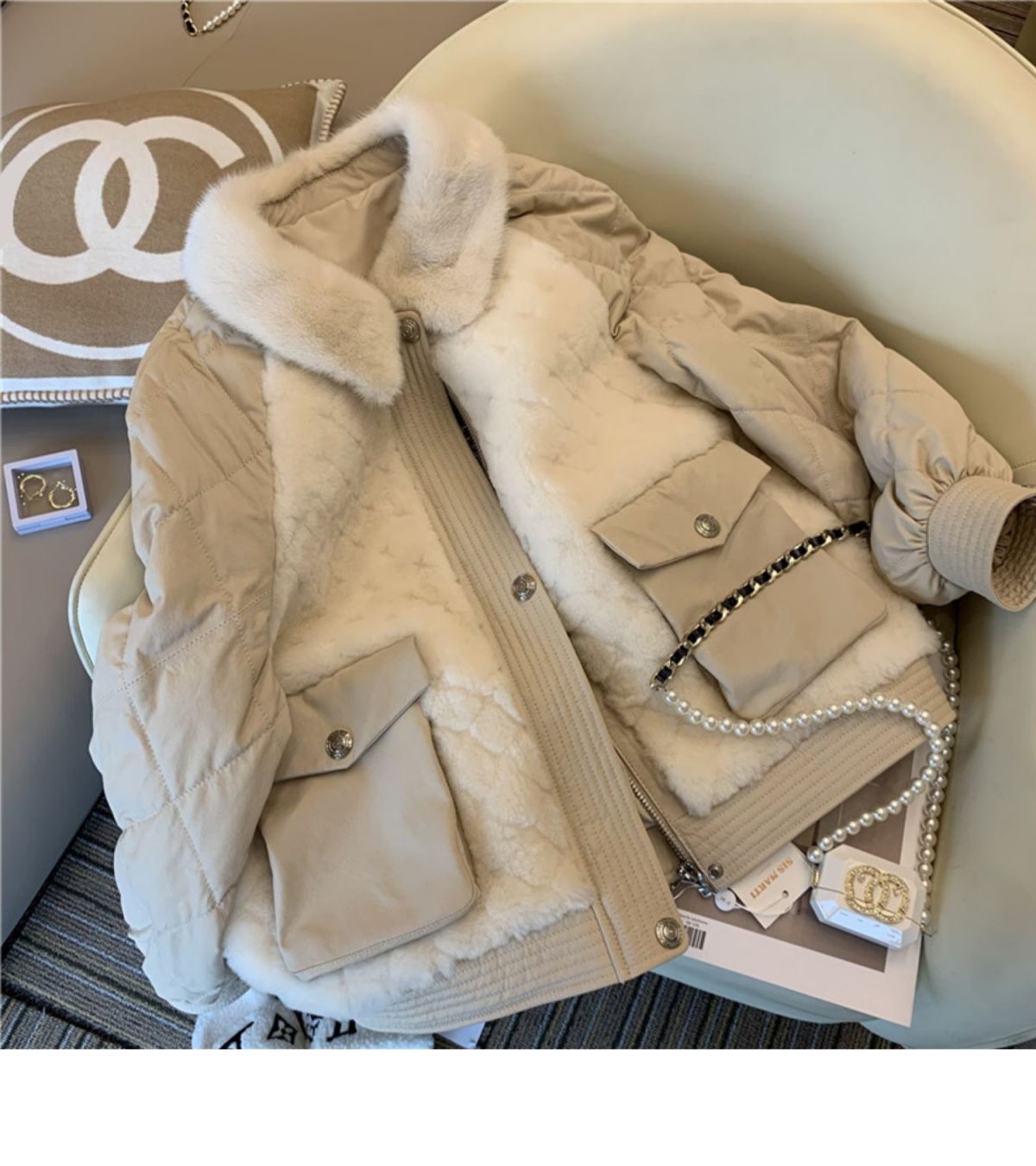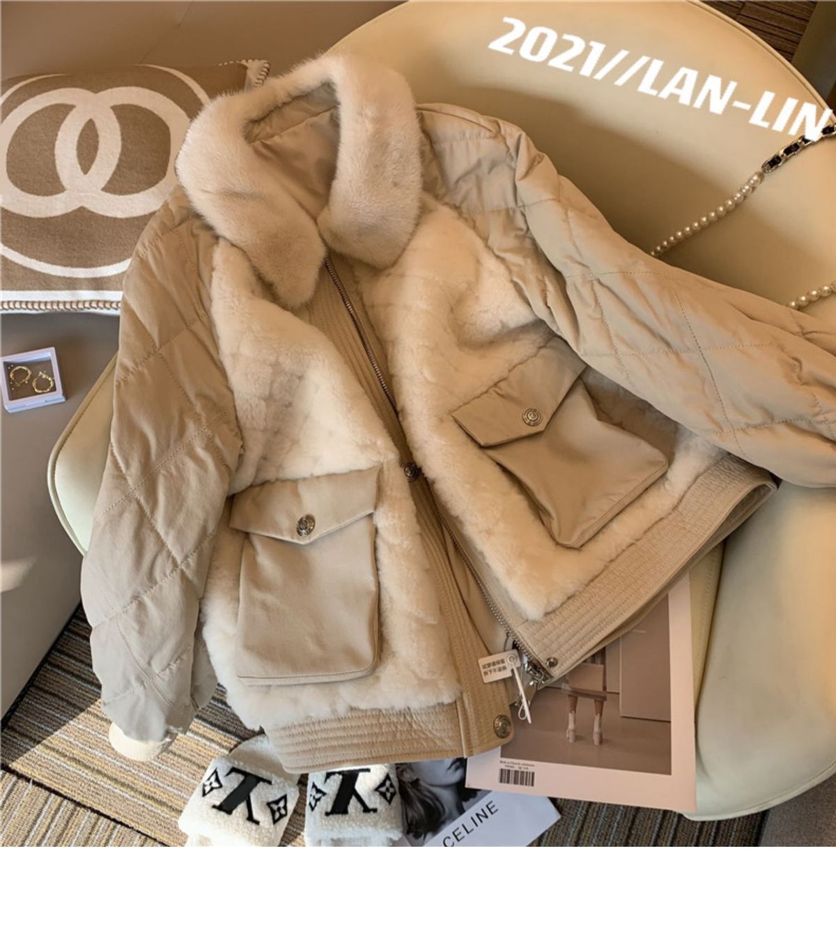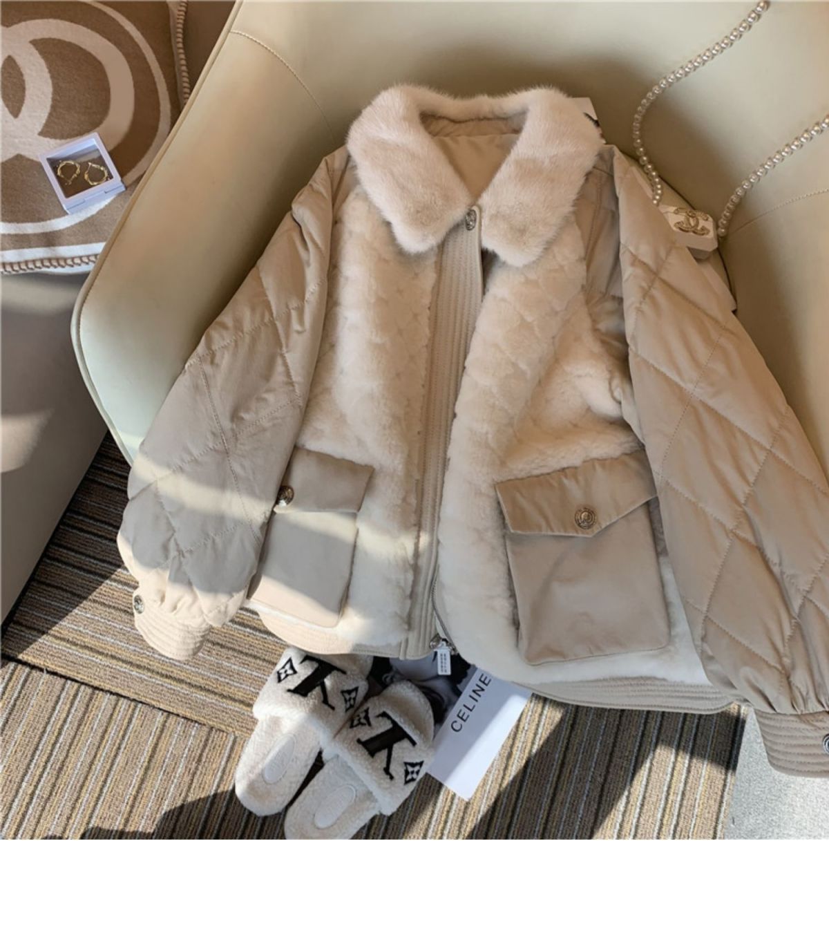 小香风羽绒棉服女冬季2022年新款加绒加厚短款仿兔毛毛绒棉衣外套