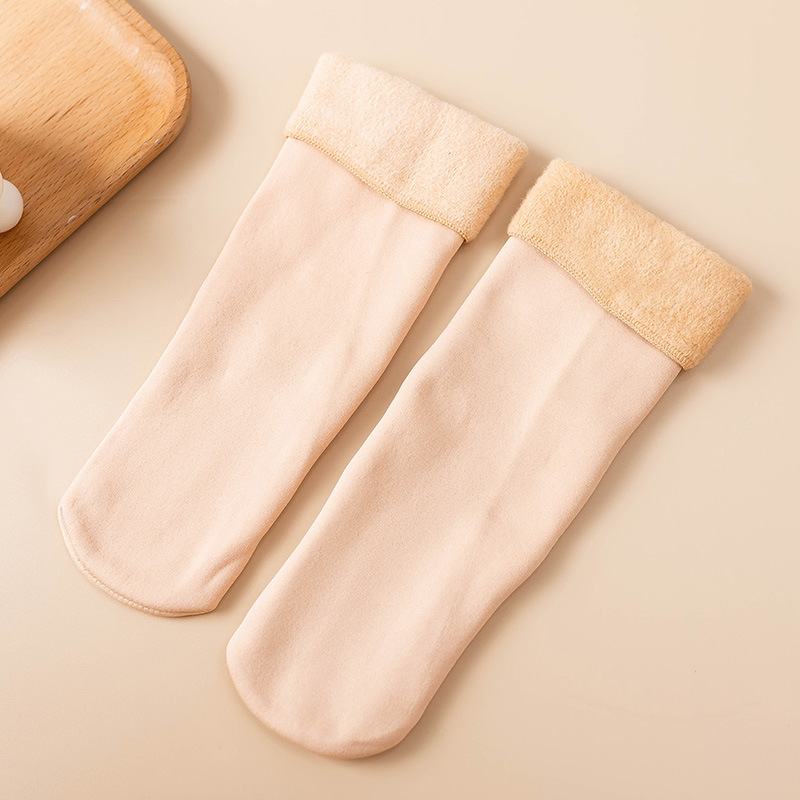 【工厂直供】加绒加厚雪地袜秋冬仿锦纶翻边保暖中筒睡眠地板袜子