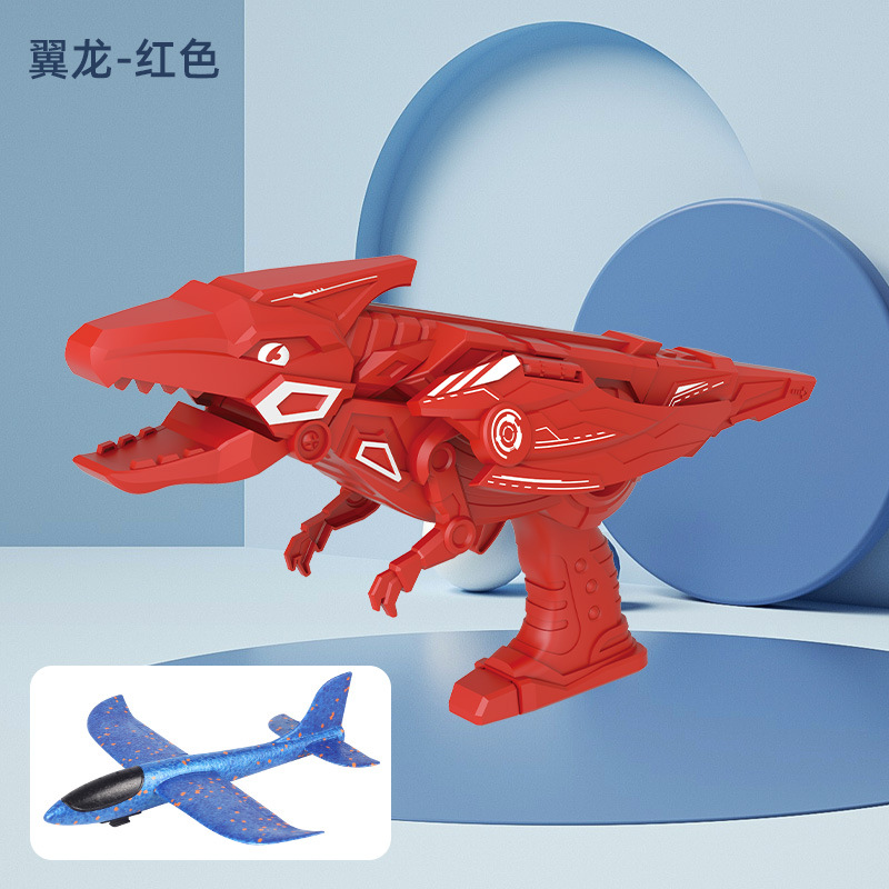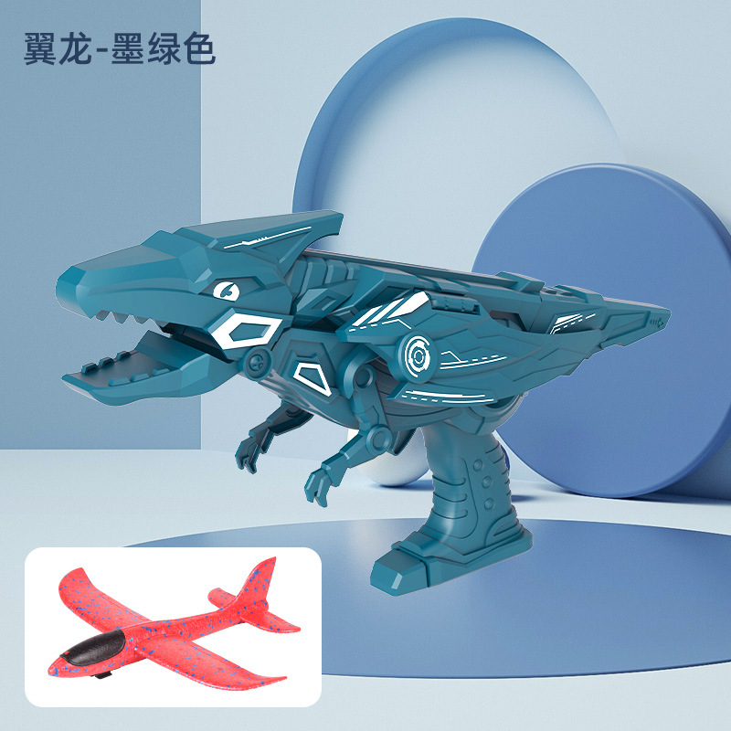 跨境亚马逊 新款恐龙泡沫弹射飞机枪手抛滑翔飞机器儿童户外玩具
