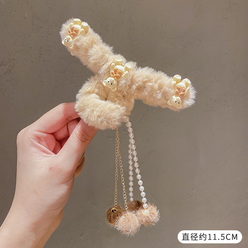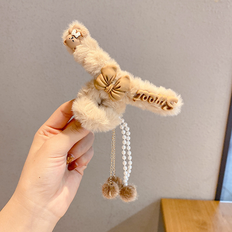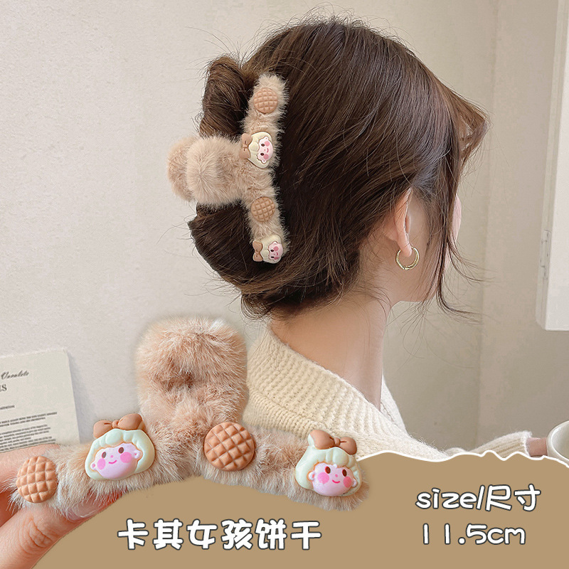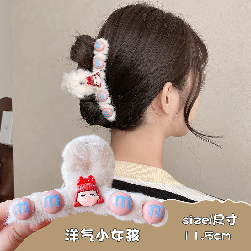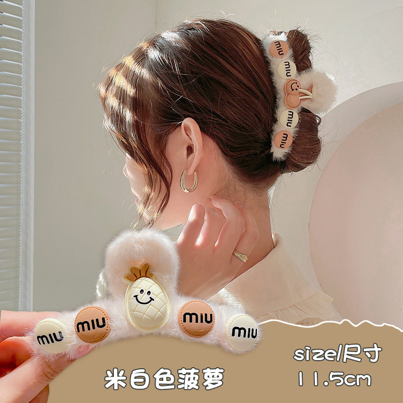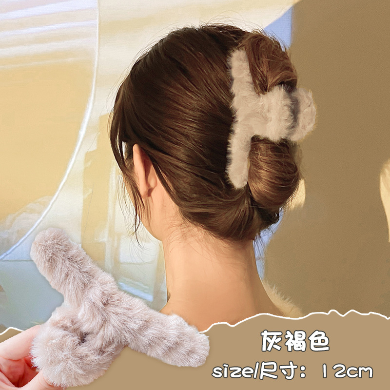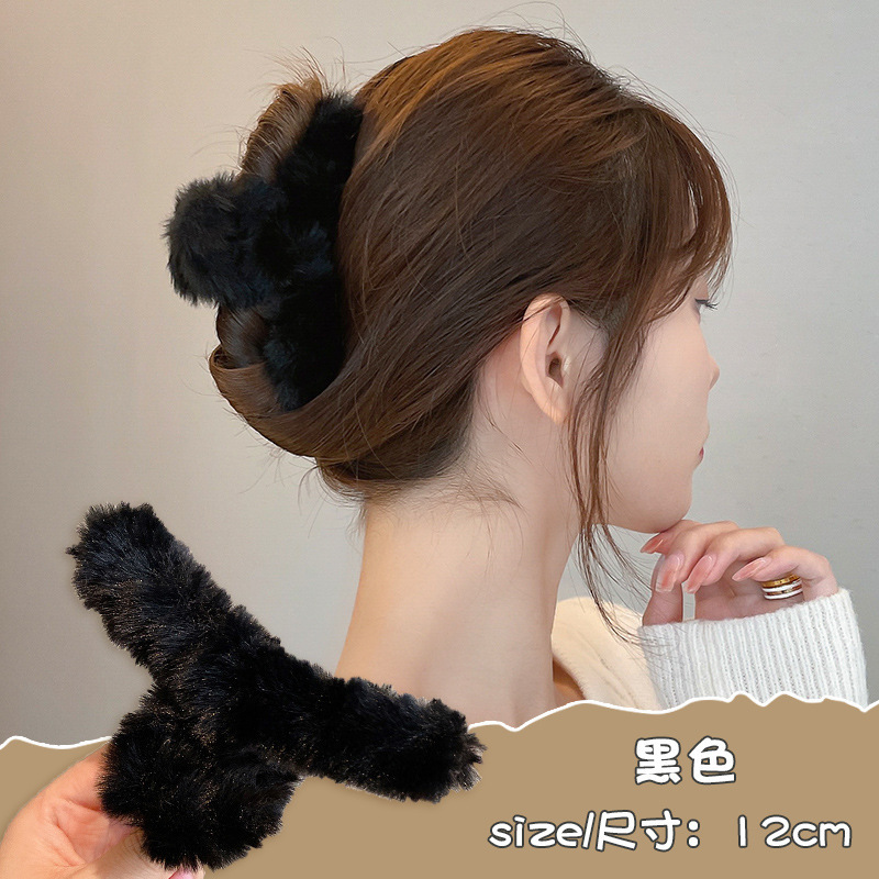 毛绒发夹女后脑勺打抓夹鲨鱼夹毛茸茸发卡网红2022年新款夹子头饰