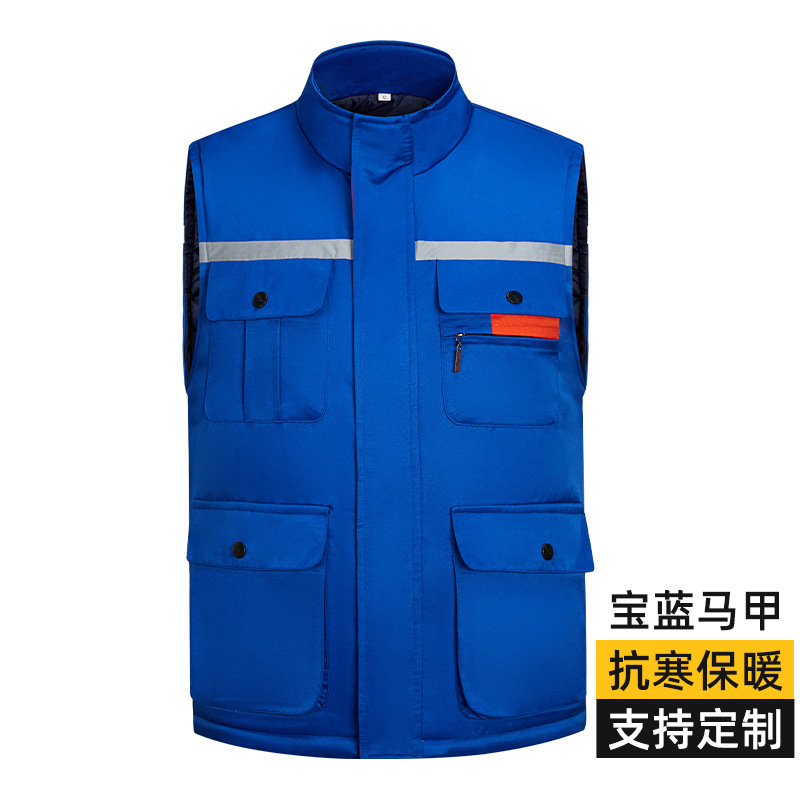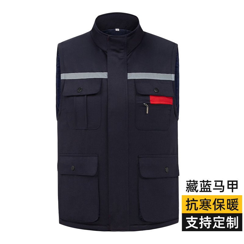 冬季棉加厚马甲工装多口袋反光男女款劳保汽修工人穿棉坎肩