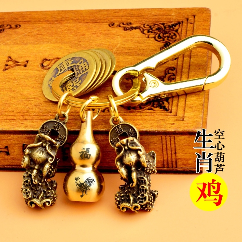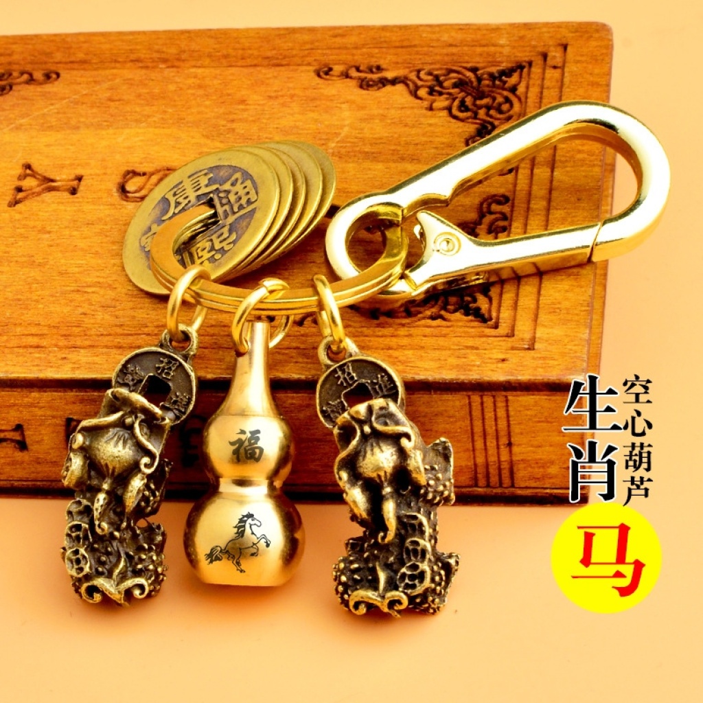 双貔貅钥匙扣空心葫芦雕刻十二生肖钥匙扣鼠牛虎兔龙蛇马羊猴鸡狗