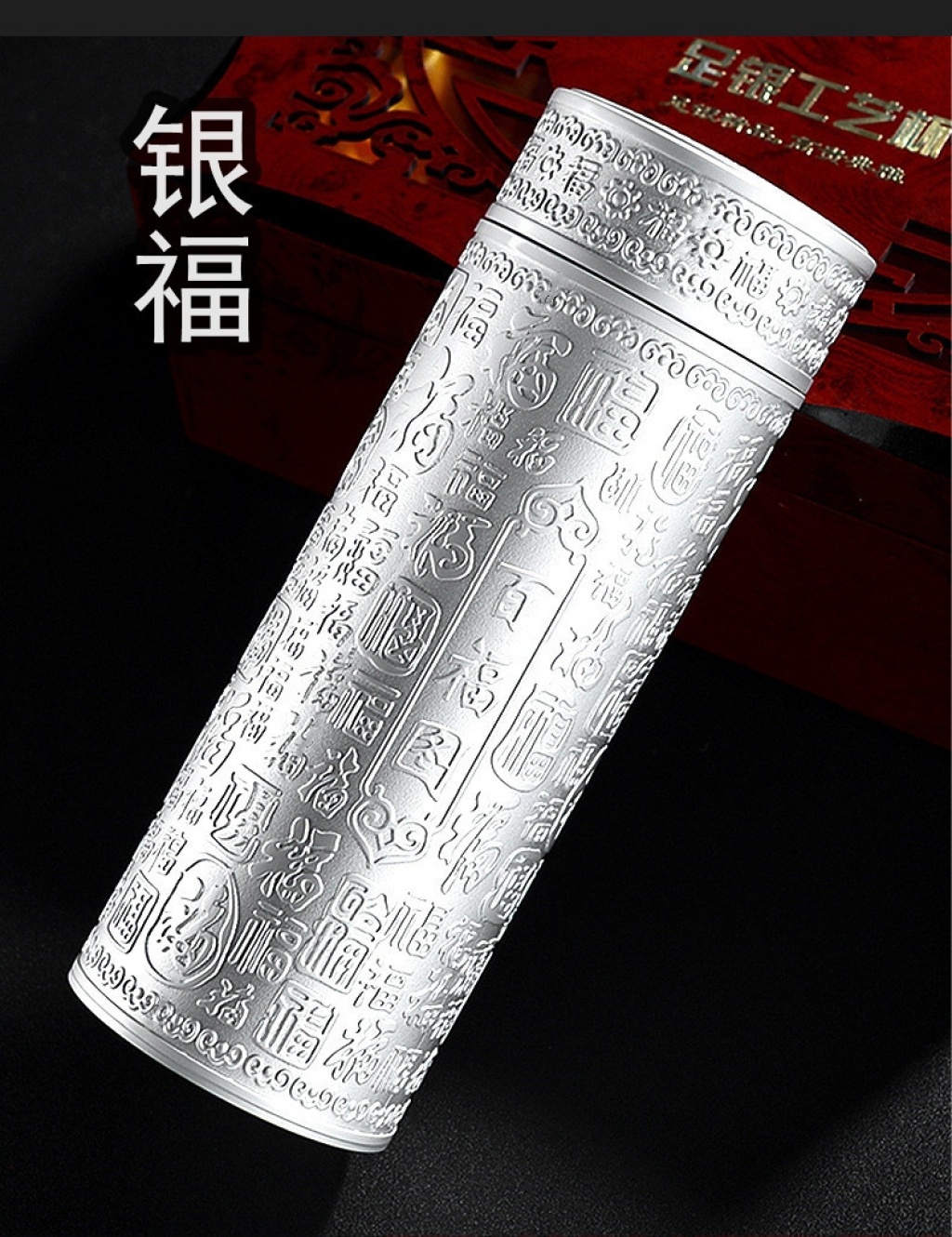 百福足银保温杯纯浮雕九龙银杯S999内胆度银离子保健杯套装礼品杯