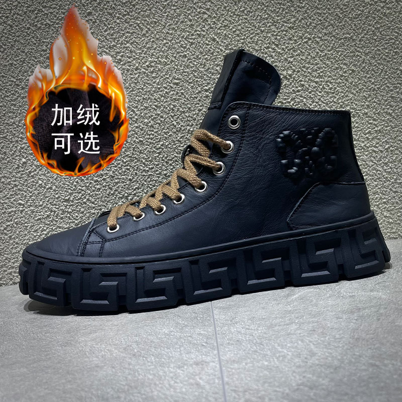 欧洲站真皮马丁靴男鞋冬季2022年新款加绒休闲鞋潮流百搭高帮棉鞋