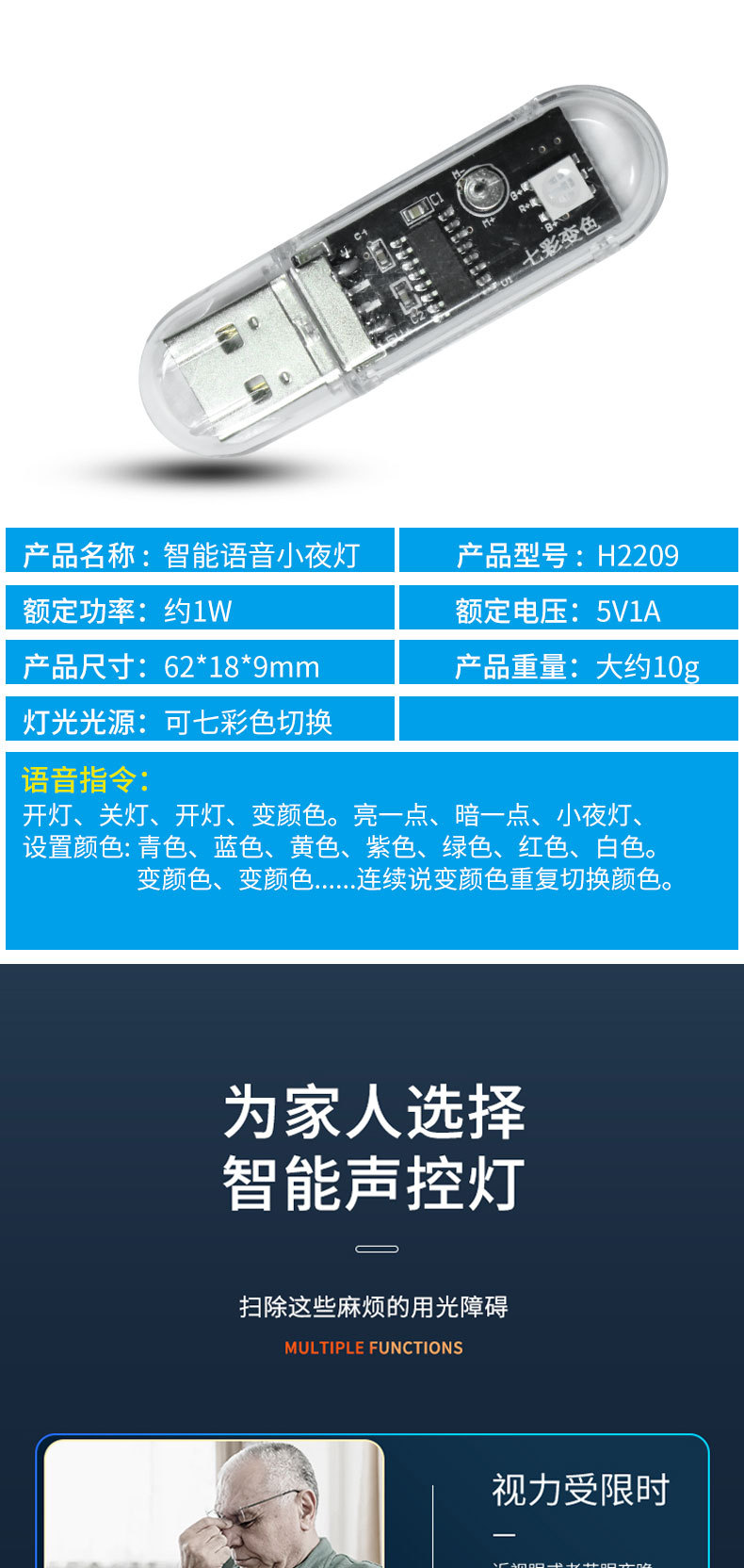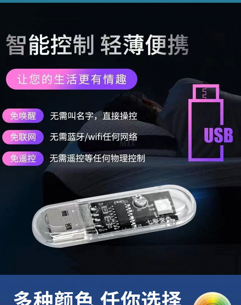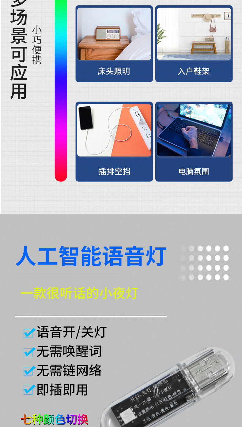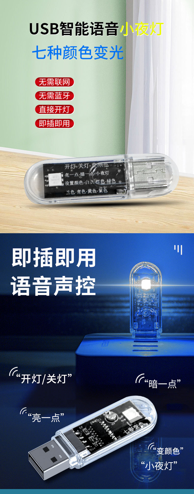 智能语音灯 USB小夜灯 插电炫彩LED灯迷你便携人工控制声控灯批发