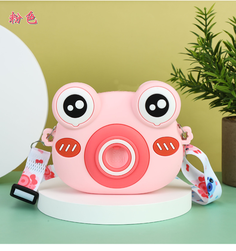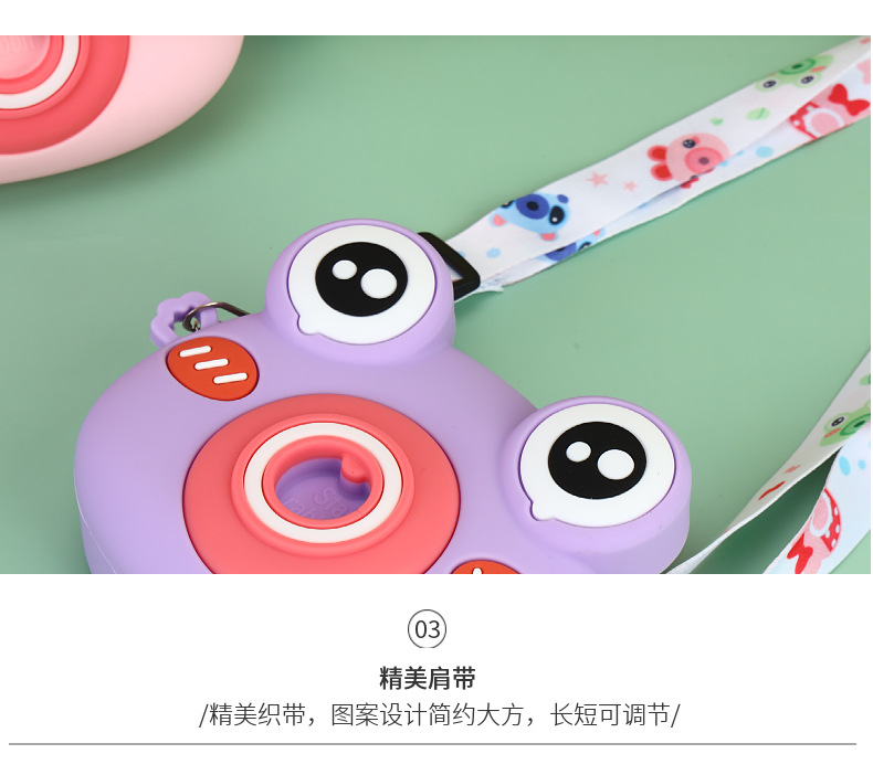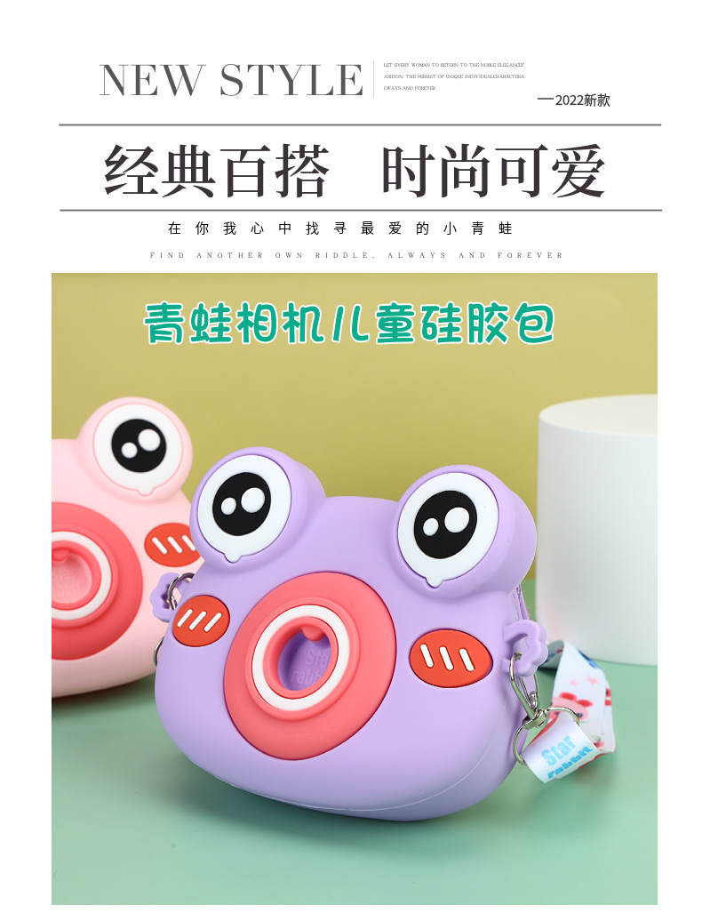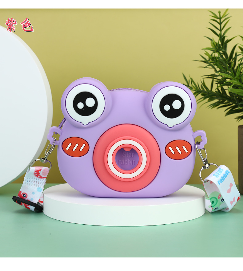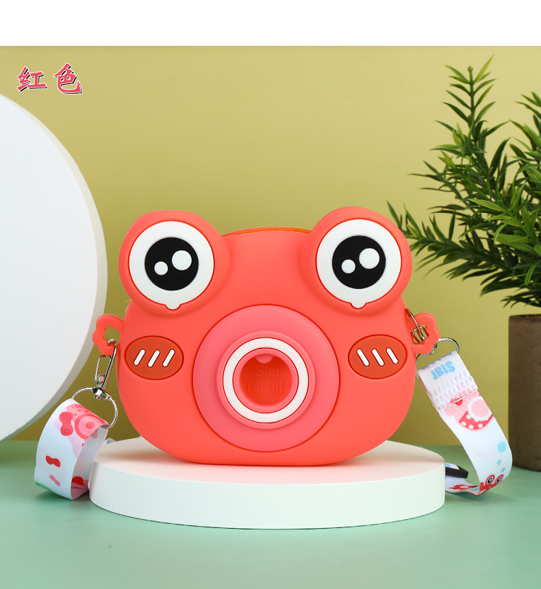 2022硅胶儿童零钱包 卡通青蛙相机儿童单肩包 可爱青蛙硅胶斜挎包