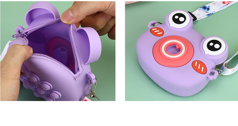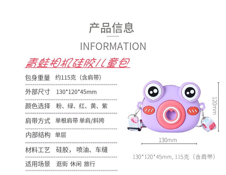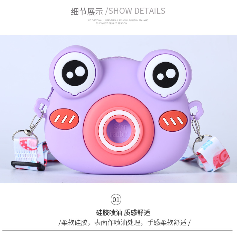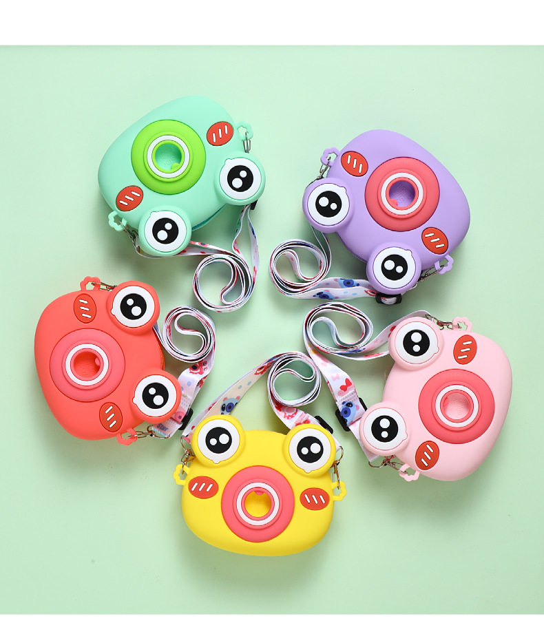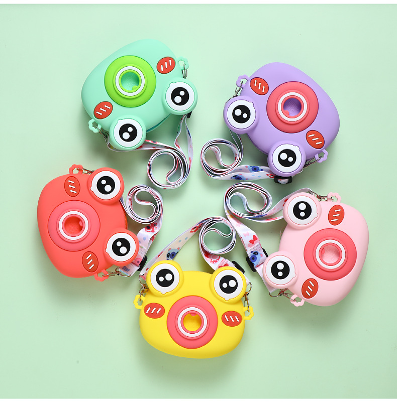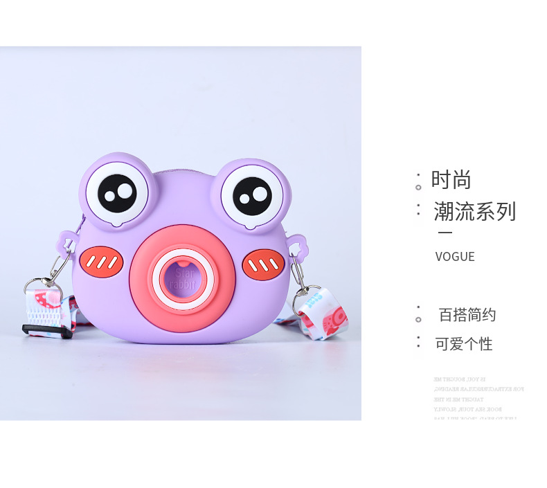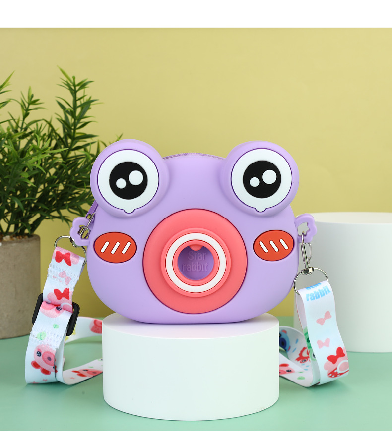 2022硅胶儿童零钱包 卡通青蛙相机儿童单肩包 可爱青蛙硅胶斜挎包