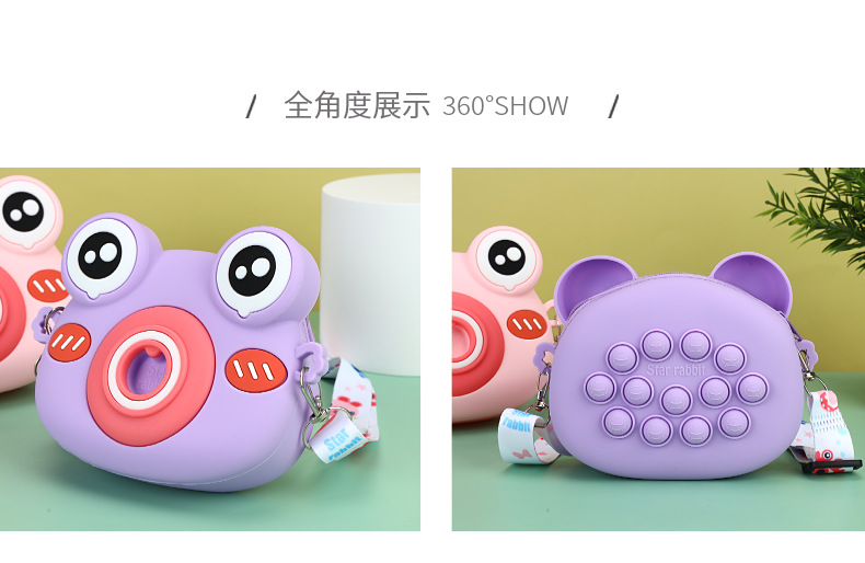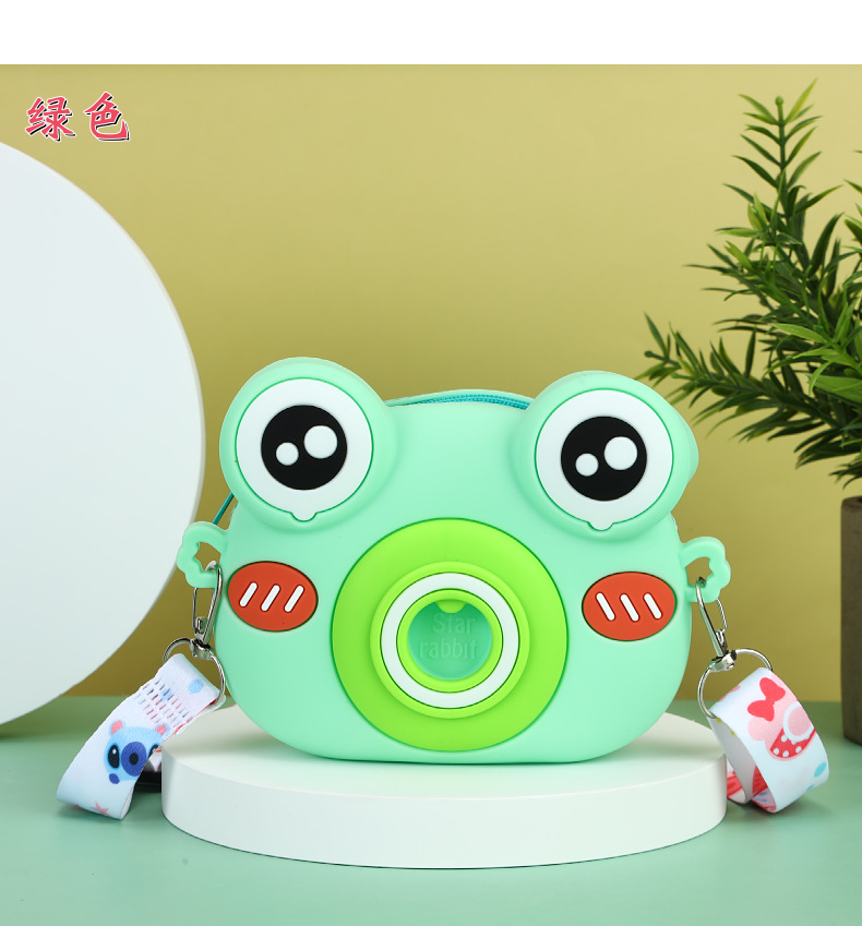 2023可爱青蛙硅胶斜挎包硅胶儿童零钱包 卡通青蛙相机儿童单肩包