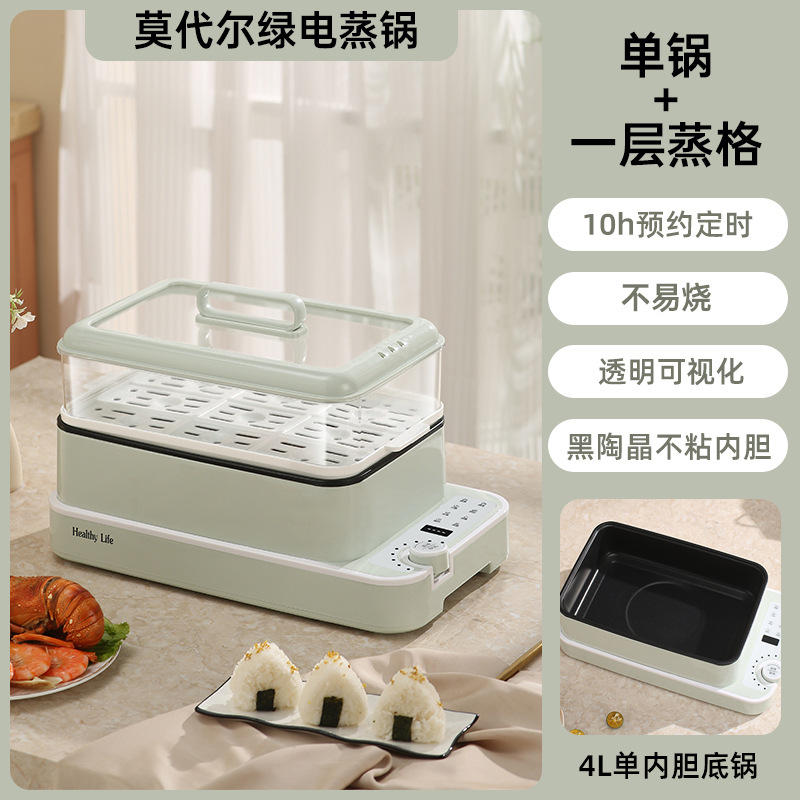 家用一体多功能电蒸锅蒸笼三层大容量可视透明保温预约定时蒸煮锅
