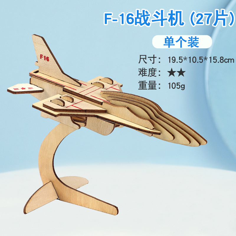 3D立体拼图木质飞机益智玩具学生diy拼插积木模型儿童礼物批发
