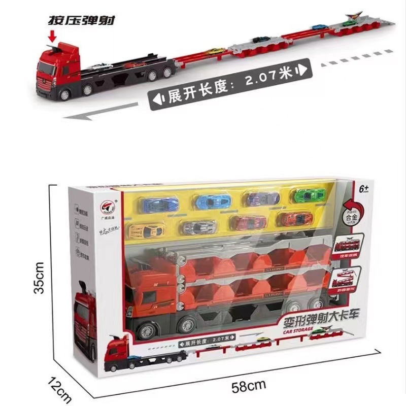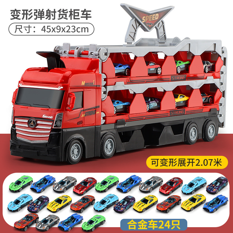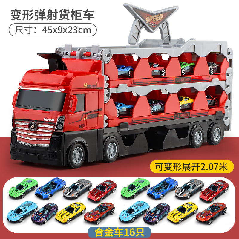 儿童玩具变形弹射大卡车合金车模型折叠收纳运输车3-6岁4男孩礼物