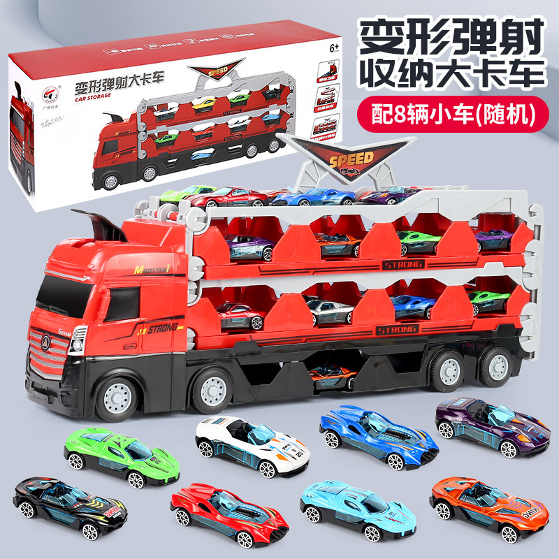 厂家直销变形弹射大卡车货柜车合金车模型折叠收纳运输车男孩玩具