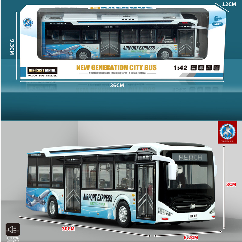 大号仿真模型1:42合金机场巴士新能源公共汽车灯光声效儿童玩具