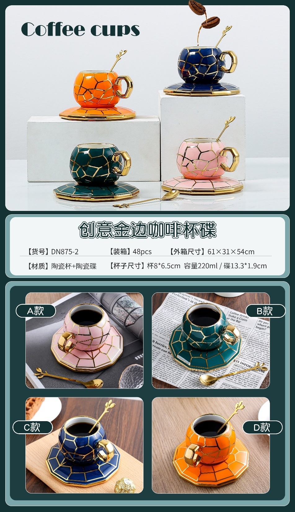 创意精致咖啡杯金边陶瓷杯碟勺下午茶杯休闲杯办公室杯