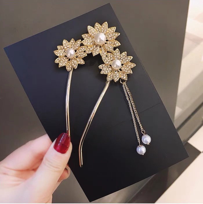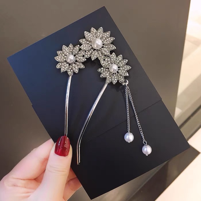 满钻花朵水钻发簪古风女生汉服头饰丸子头盘发神器簪子
