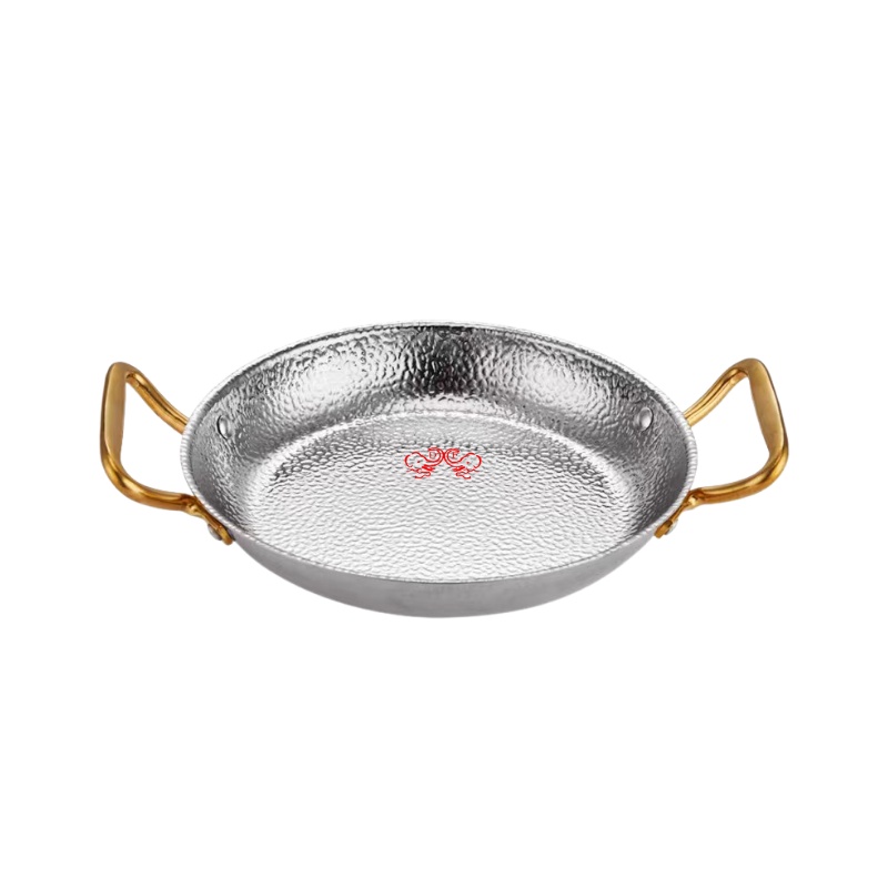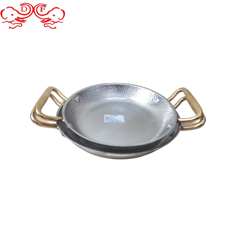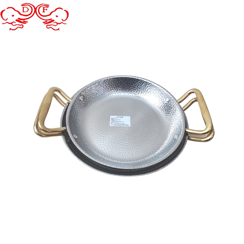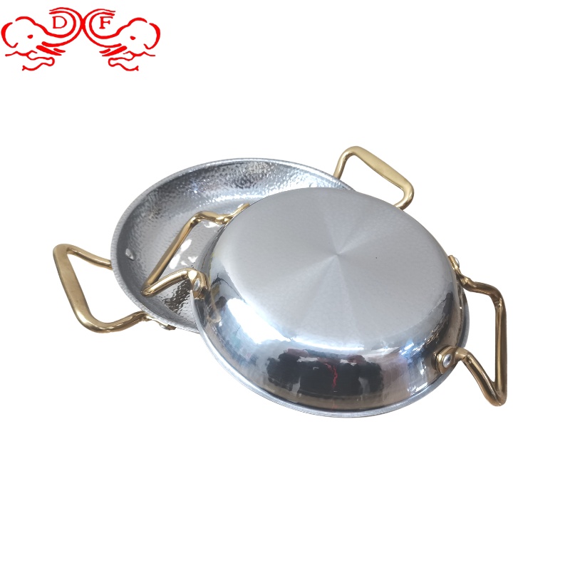 DF99040不锈钢本色酒吧鼎平底煎锅不锈钢金色海鲜盘不锈钢盘子