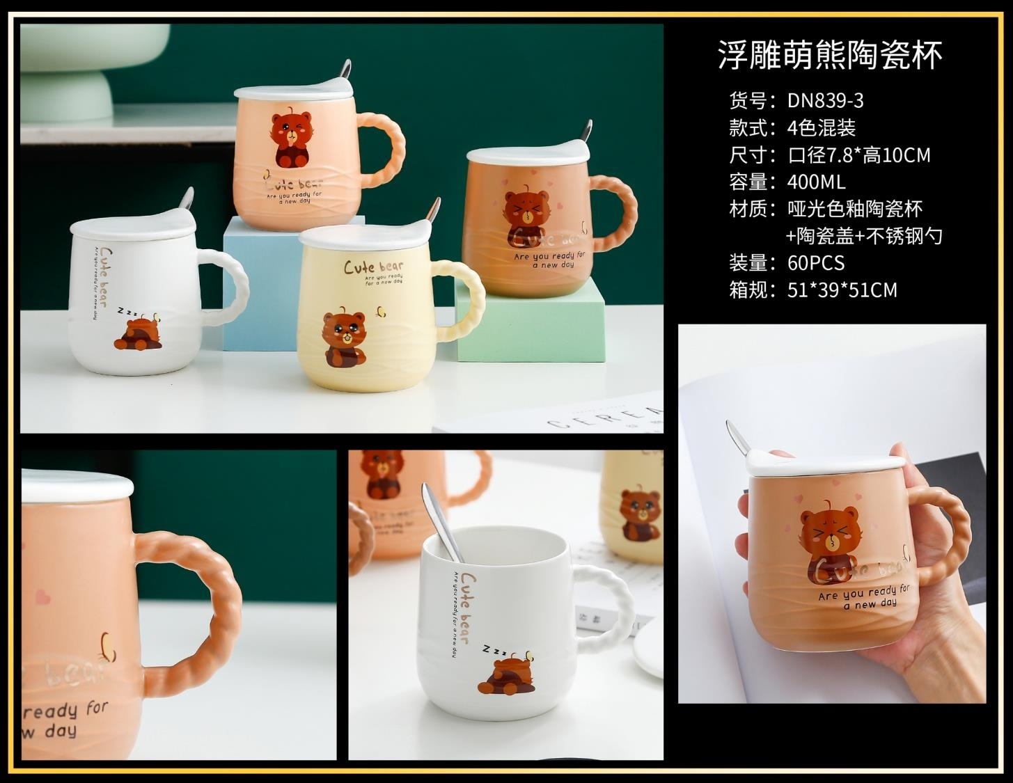 创意浮雕萌熊陶瓷杯马克杯咖啡杯办公室水杯家用水杯礼品杯