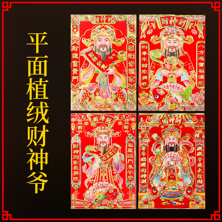 新款植绒财神立体福烫金植绒对联 春节用品对联批发厂家直销