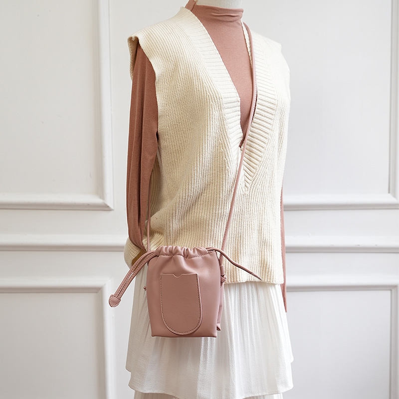 2024新款手机包女包时尚简约小福袋单肩斜挎水桶包简约抽绳小包