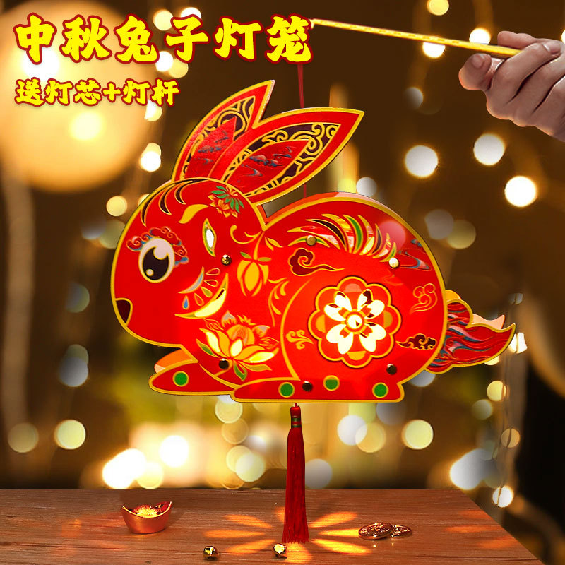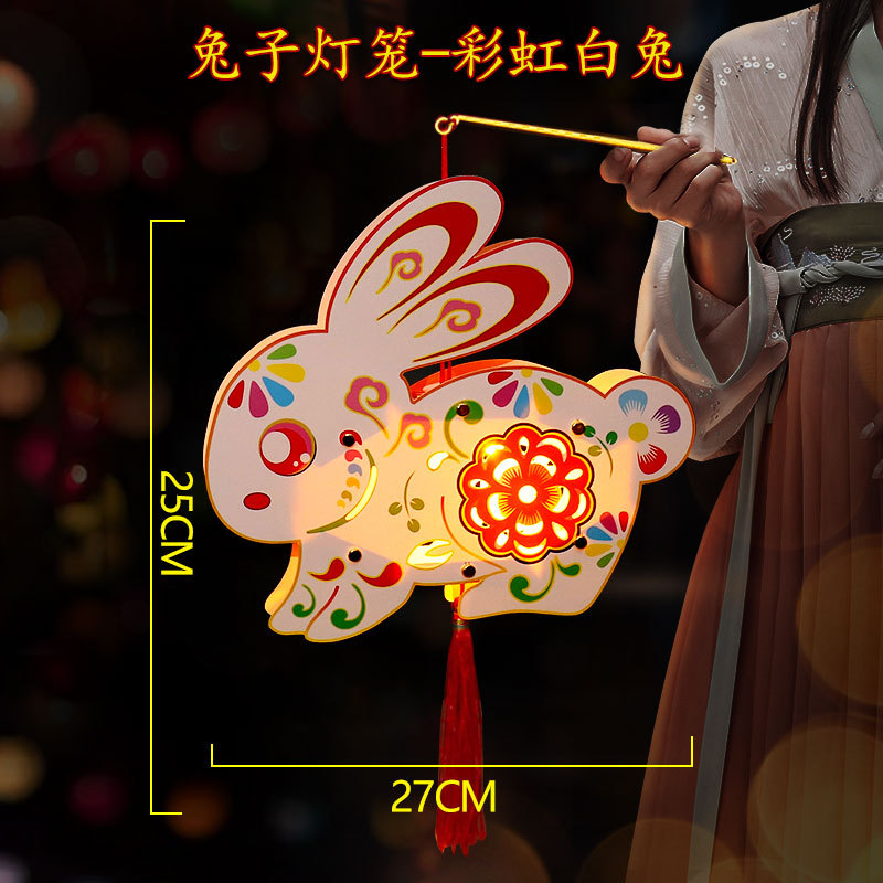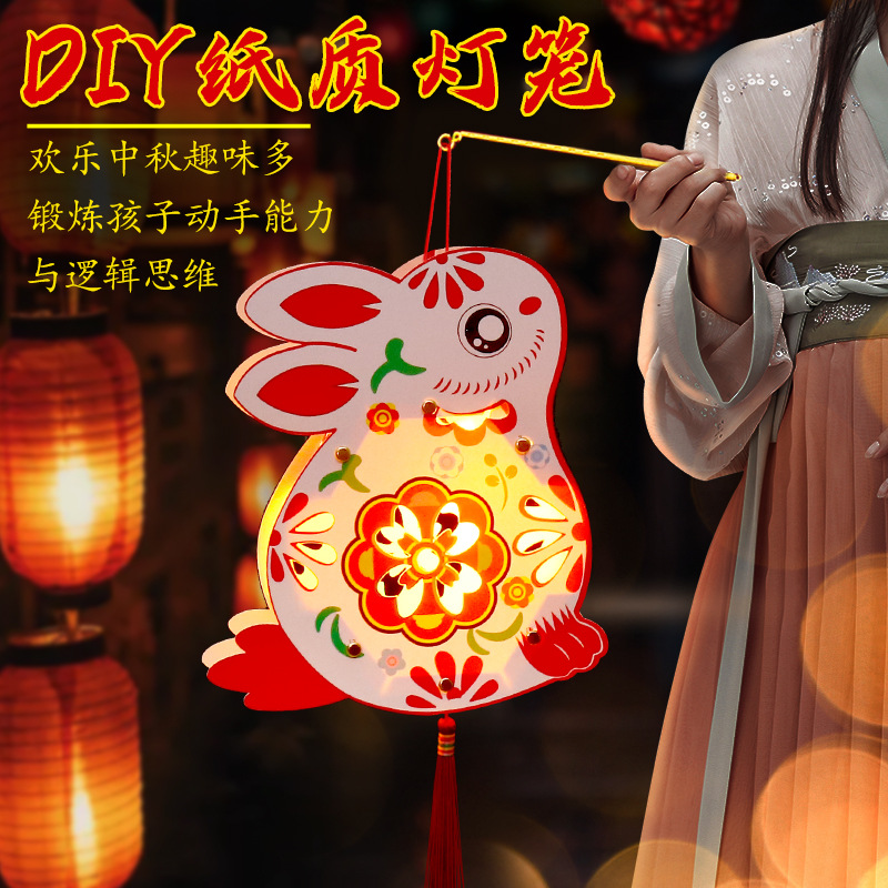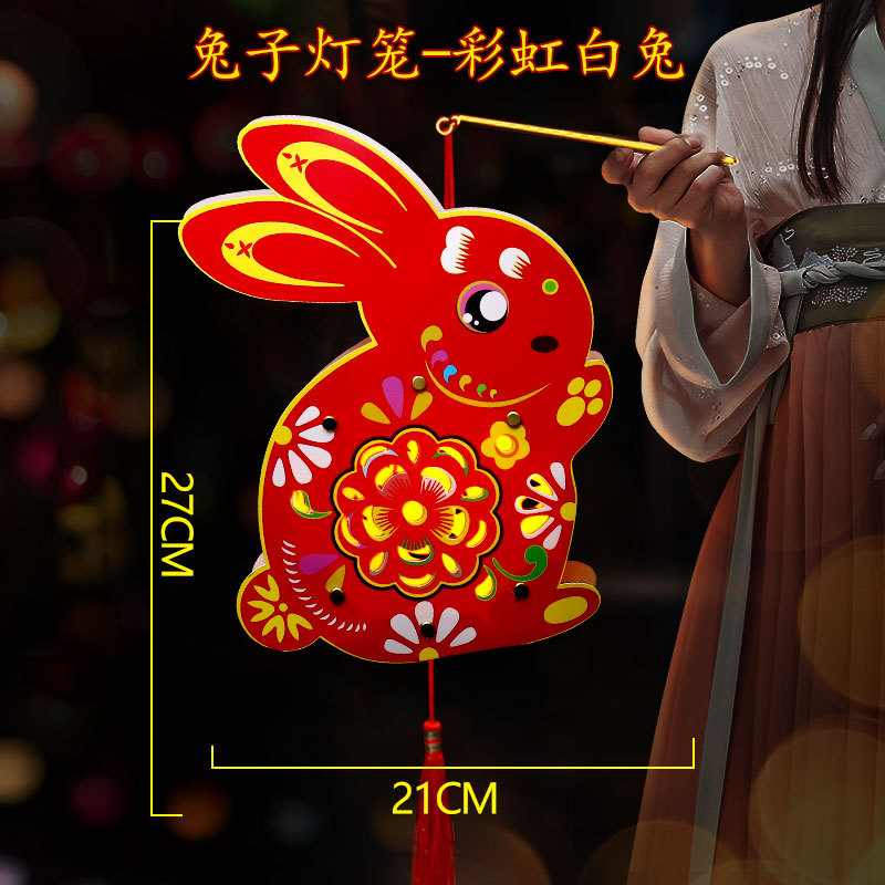 春节新年diy玉兔灯笼儿童手提发光 diy手工制作材料包元宵 兔子灯
