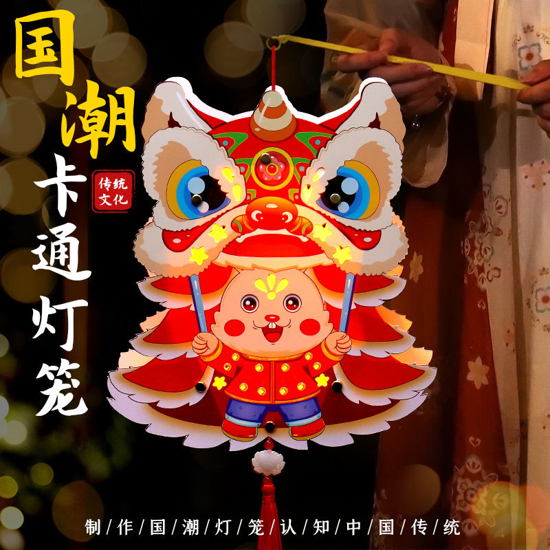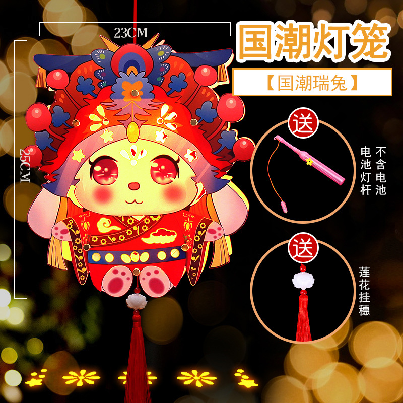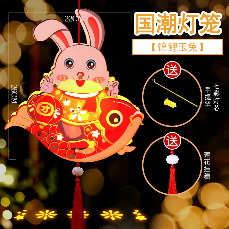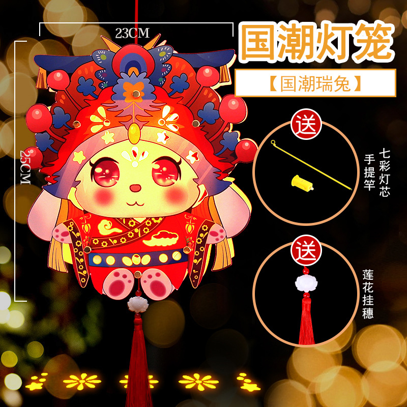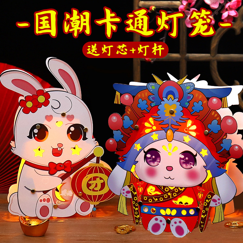 春节手工diy国潮灯笼儿童自制作发光手提材料包新年兔子花灯装饰