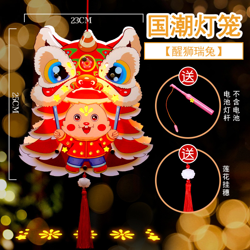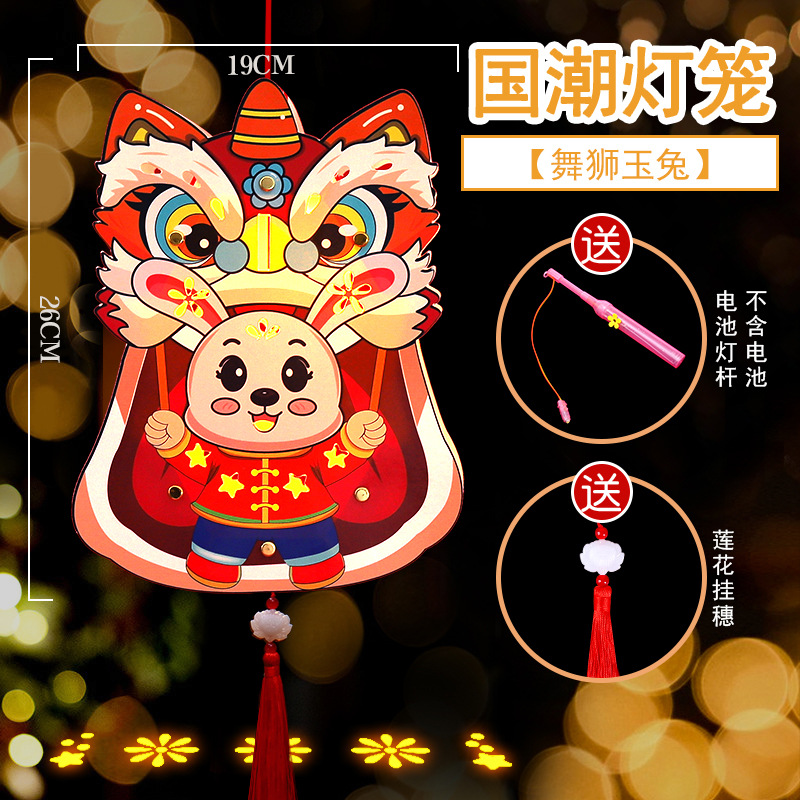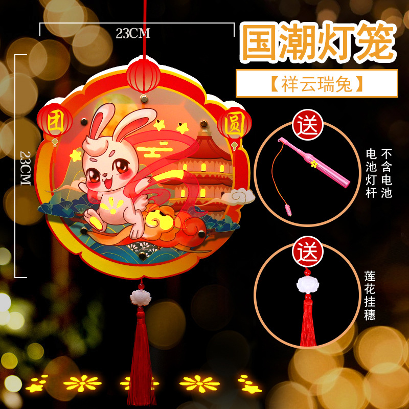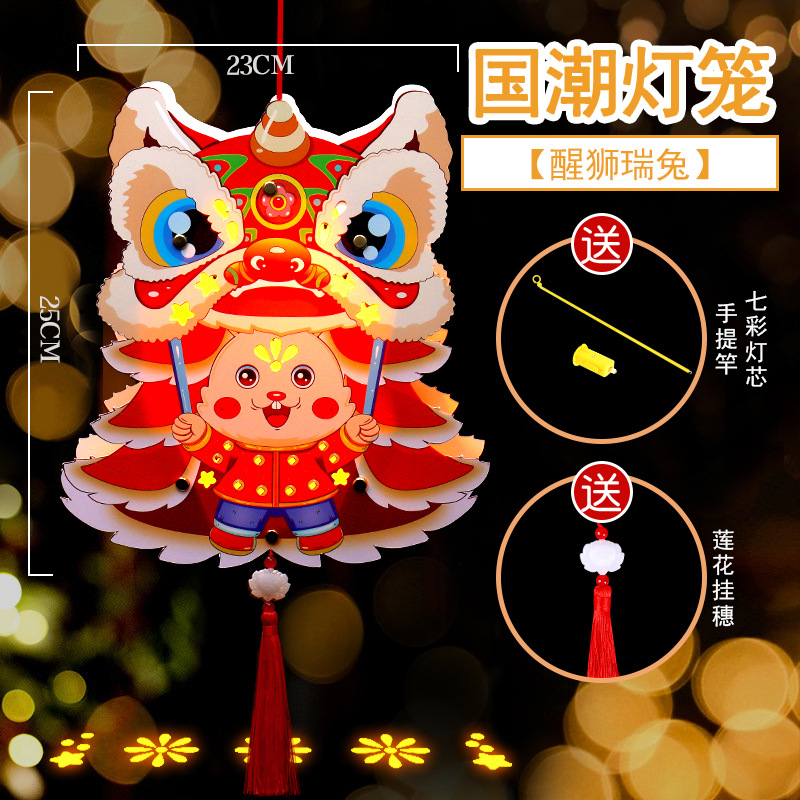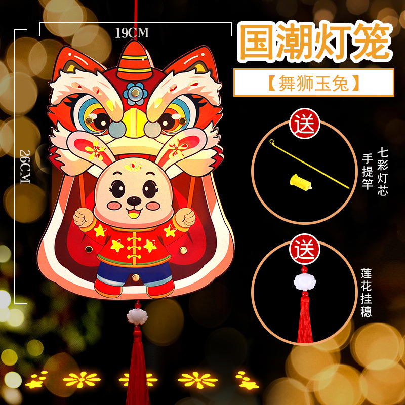 春节手工diy国潮灯笼儿童自制作发光手提材料包新年兔子花灯装饰