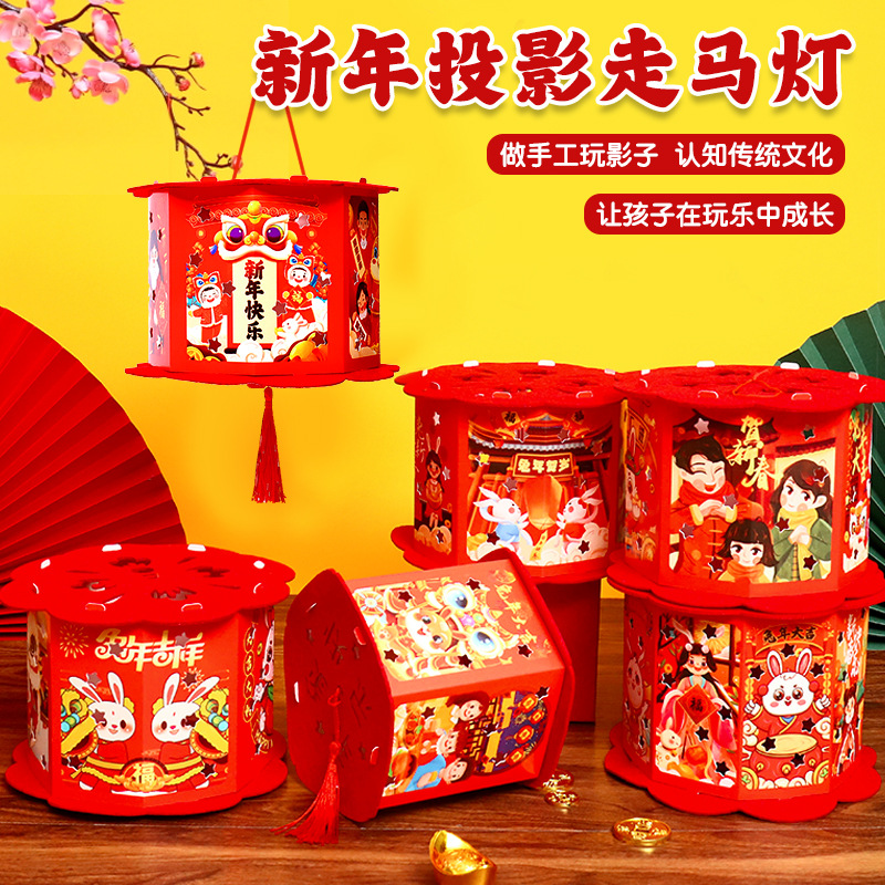 新年礼物走马灯批发地摊儿童DIY手工材料包春节装饰手提发光灯笼