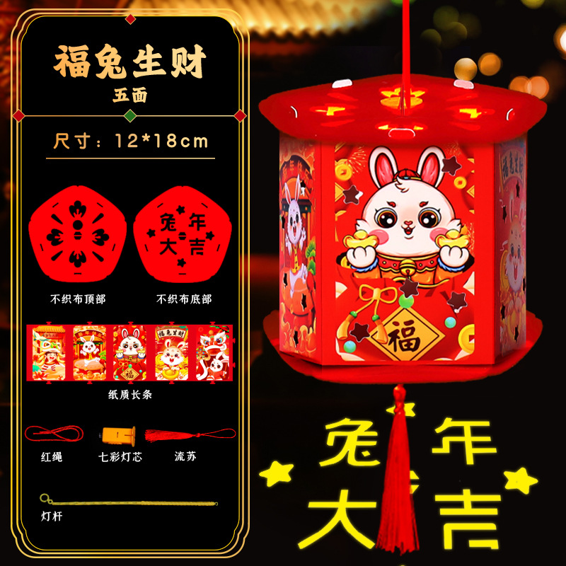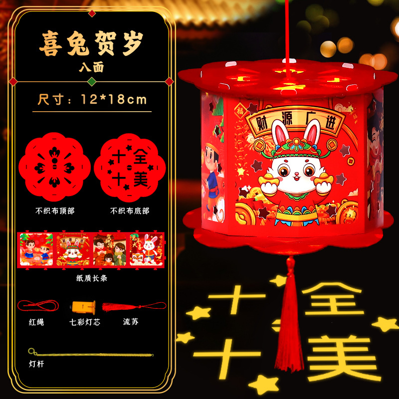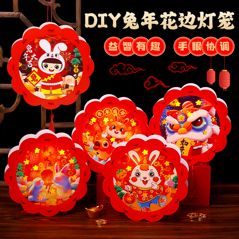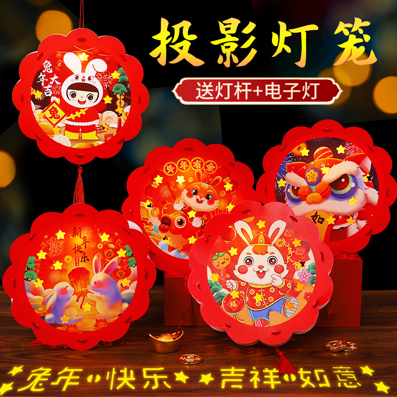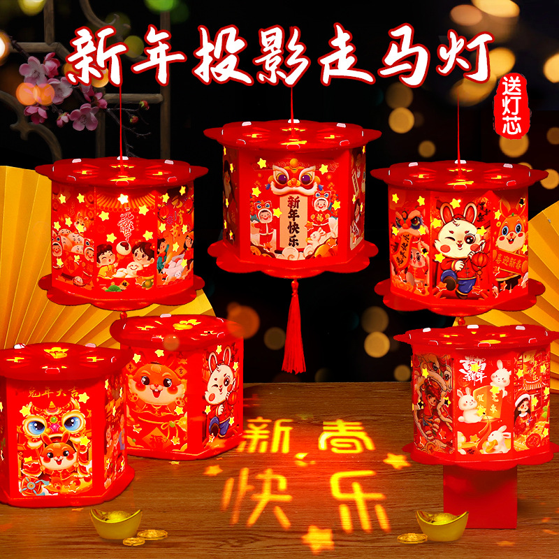 新年灯笼装饰手工制作diy投影材料包儿童手提发光走马灯花边灯笼