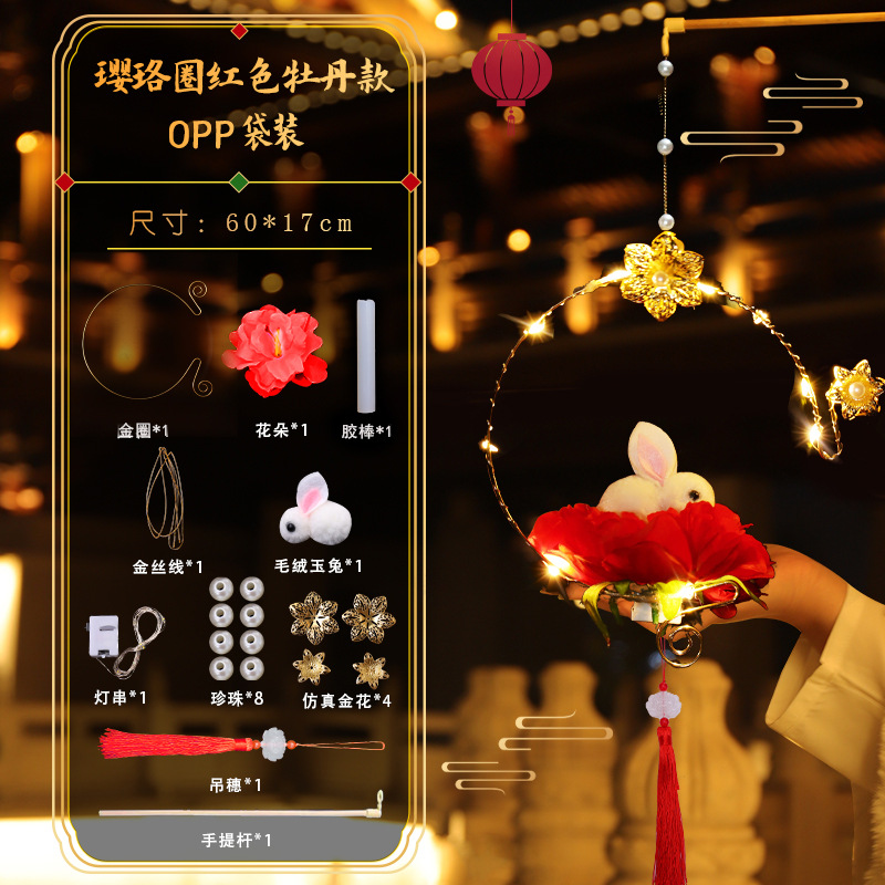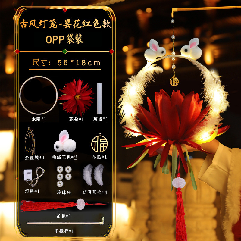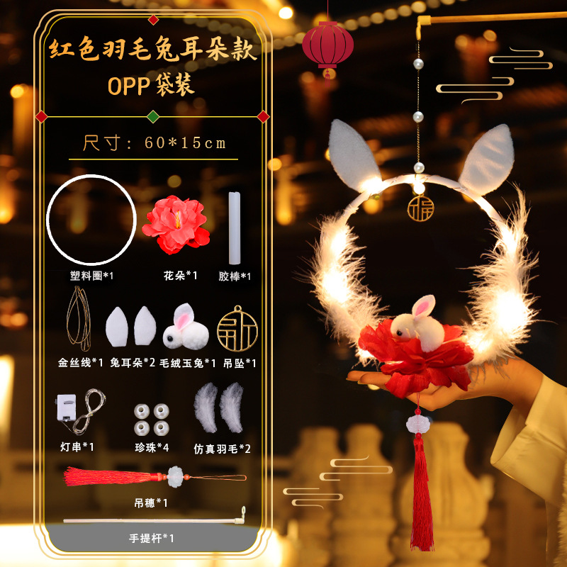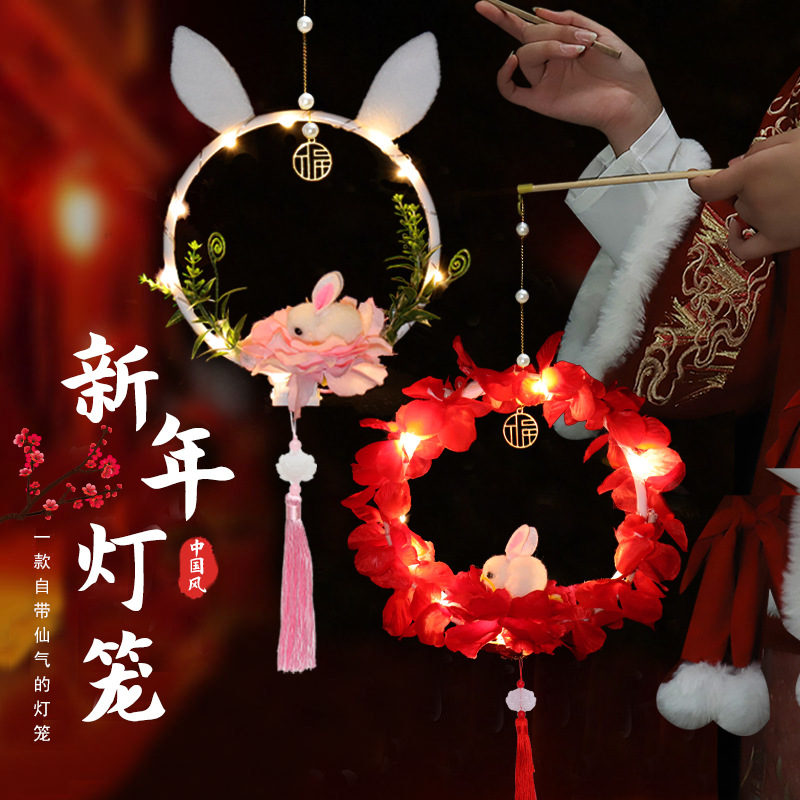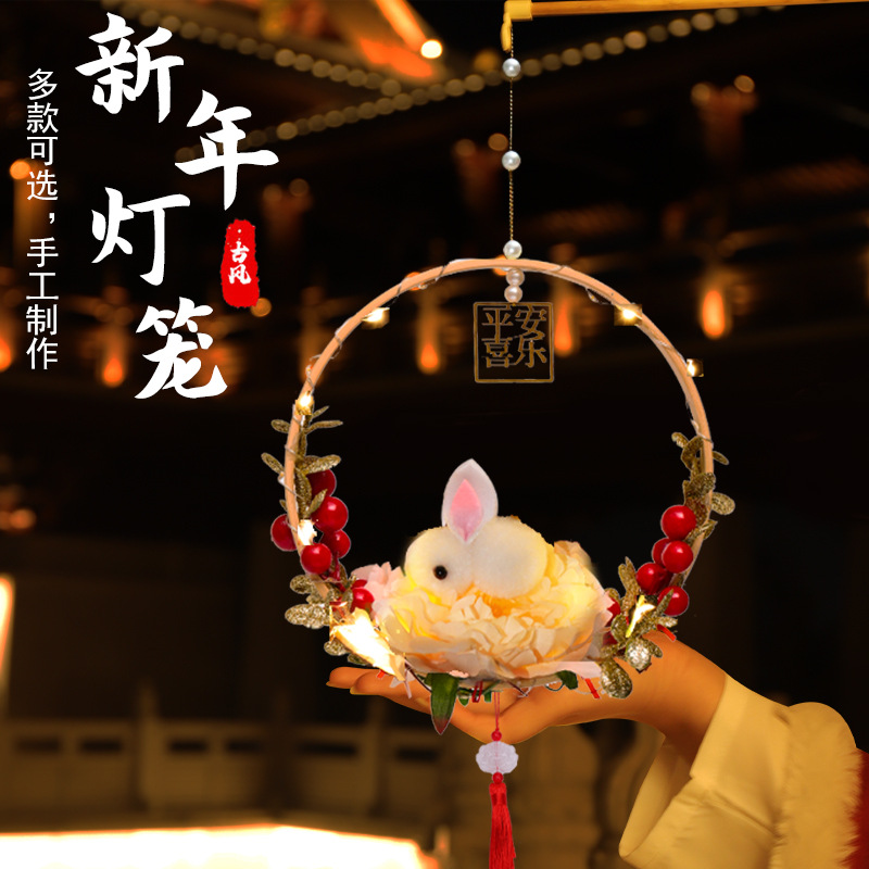 春节花灯批发古风手工diy儿童手提发光制作材料新年兔子灯笼