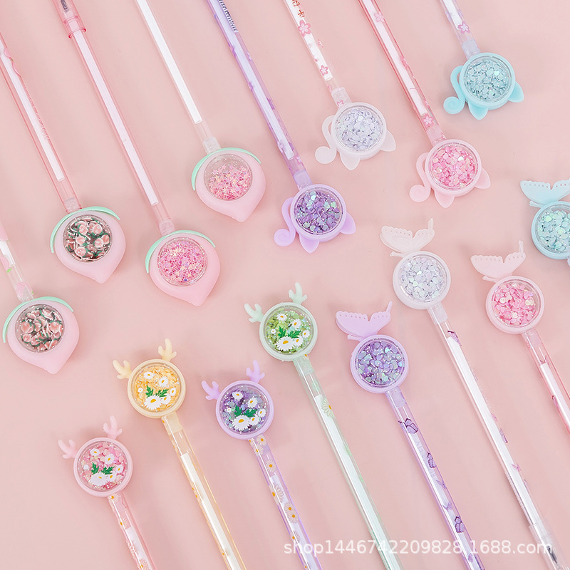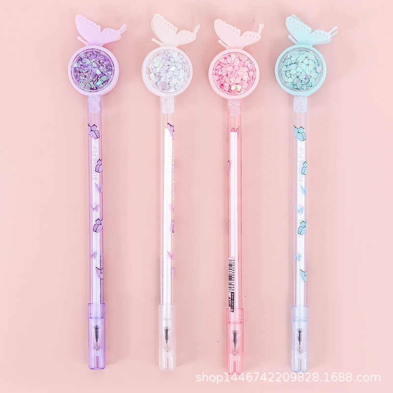 蝴蝶亮片中性笔批发网红ins风少女心可爱黑色水笔兔子小鹿亮片笔