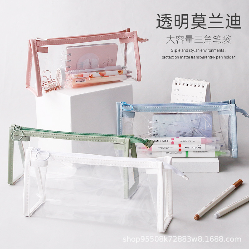 PVC透明笔袋ins文具韩系简约学生大容量拉链收纳袋便携防水化妆包