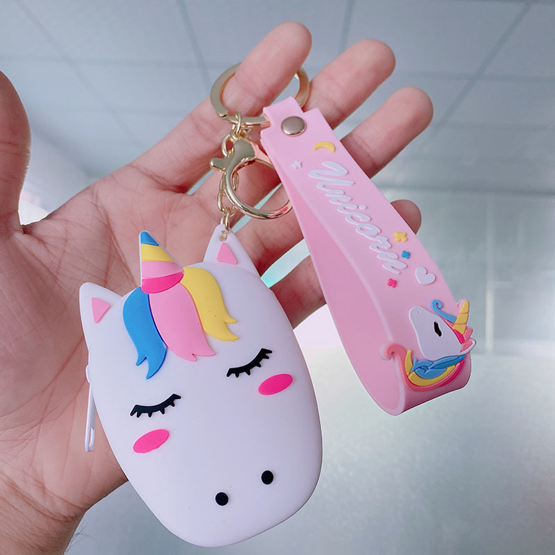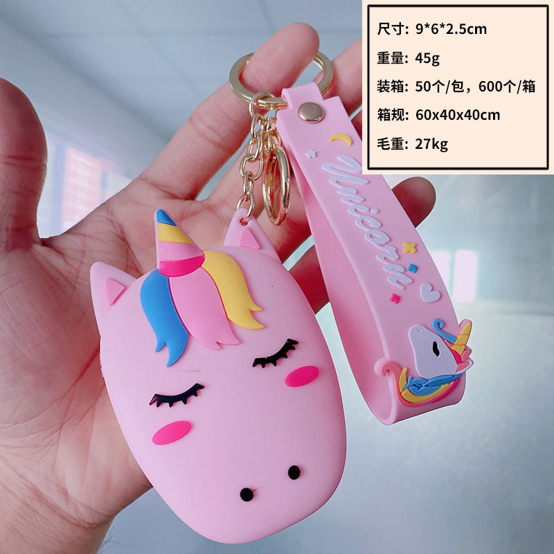 创意独角兽硅胶零钱包 便携硬币小包包 数据线收纳包钥匙扣挂件